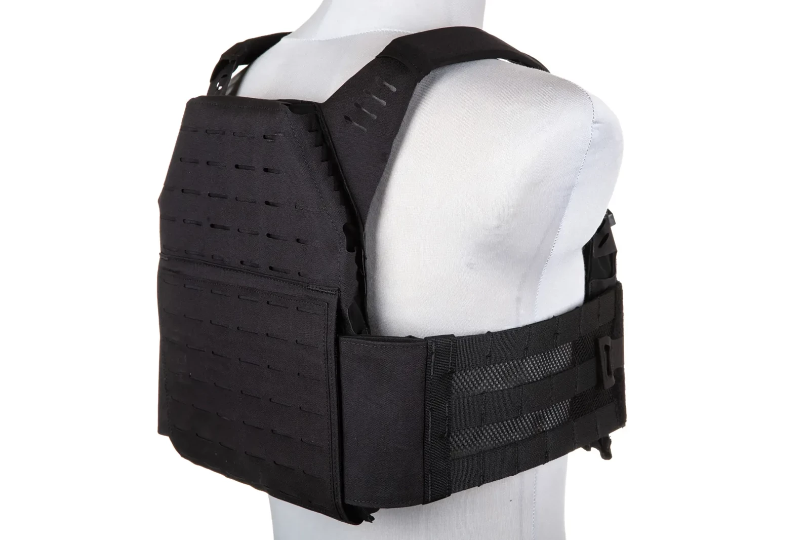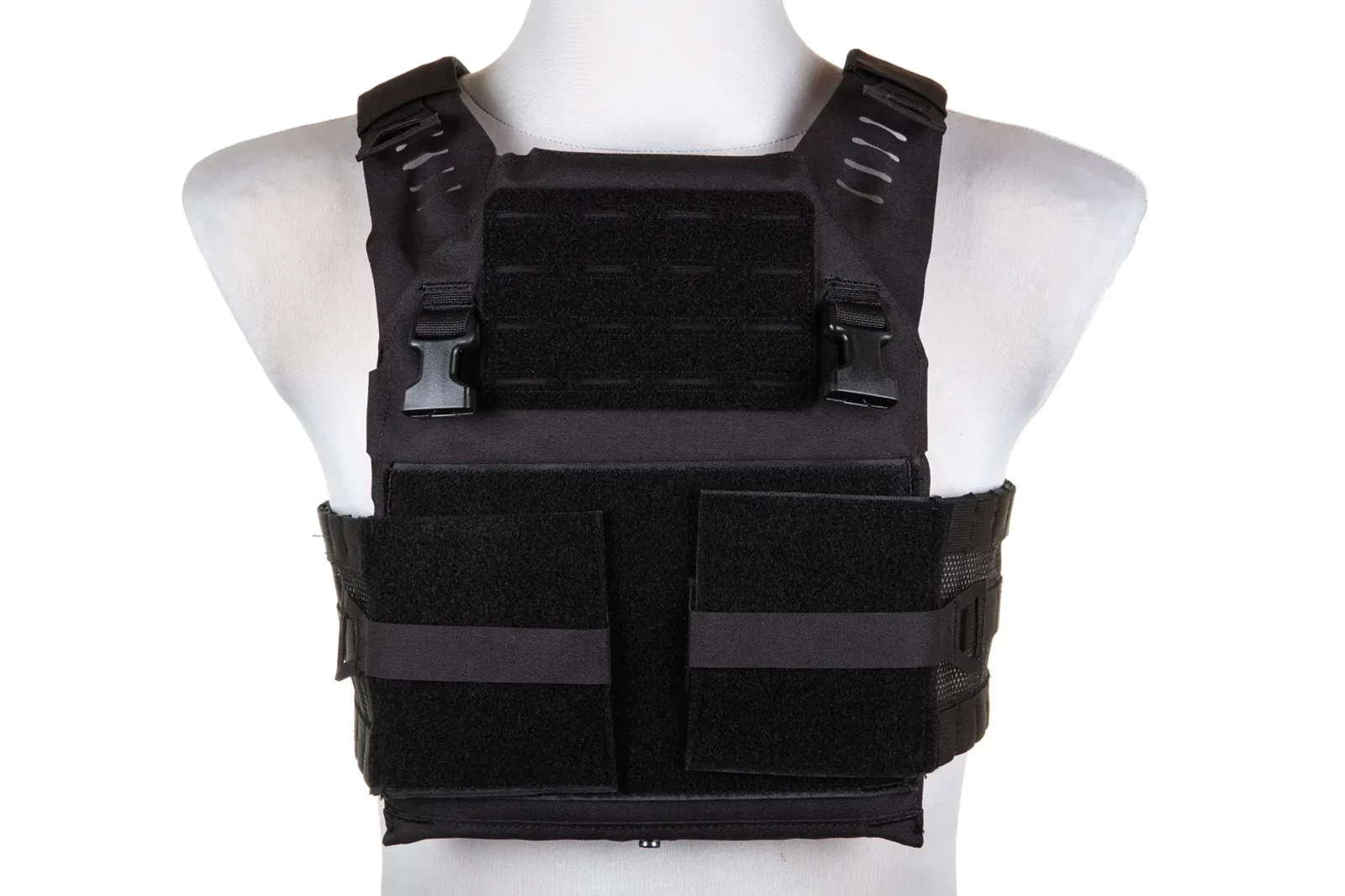 Plate carrier składa się z przedniego i tylnego panelu, które są przystosowane do stabilnego przenoszenia twardych wkładów balistycznych SAPI/ESAPI w rozmiarach S.  Płyty balistyczne wsuwane są do kieszeni od spodu i dodatkowo zabezpieczone na rzep. (Płyty balistyczne należy zakupić osobno).