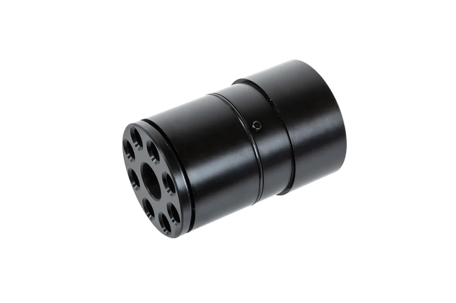 Nasadka wykonana z wytrzymałego tworzywa. Pozwoli załadować i wystrzelić kulki z repliki granatnika M3 MAAWS od firmy VFC. Produkt nakręca się na zbiornik gazu wewnątrz M3 MAAWS. Posiada 8 otworów na kulki.