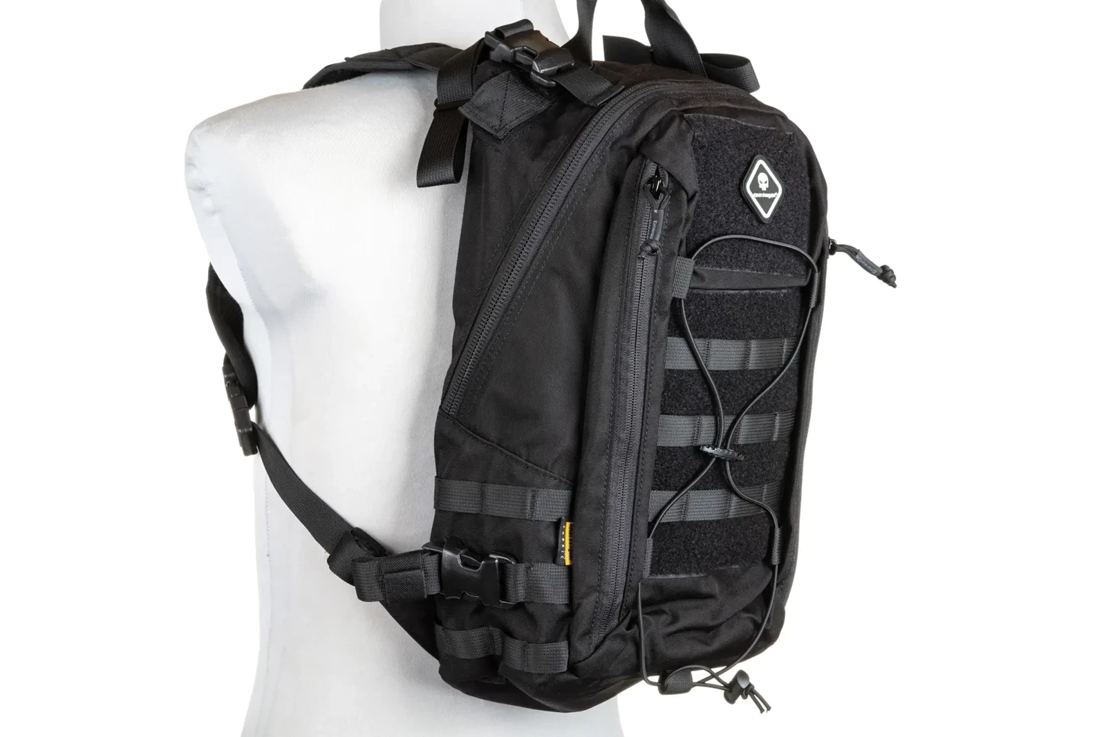 Wykonany z wytrzymałego nylonu mały plecak szturmowy. W głównej komorze, po bokach znajdują się małe kieszonki. Na zewnętrznej ścianie plecaka znajduje się płaska kieszeń wyłożona rzepem z obustronnym dostępem. Na wolnej powierzchni plecaka naszyto palsy MOLLE oraz panele rzepowe na których umieścić można np. morale patch.