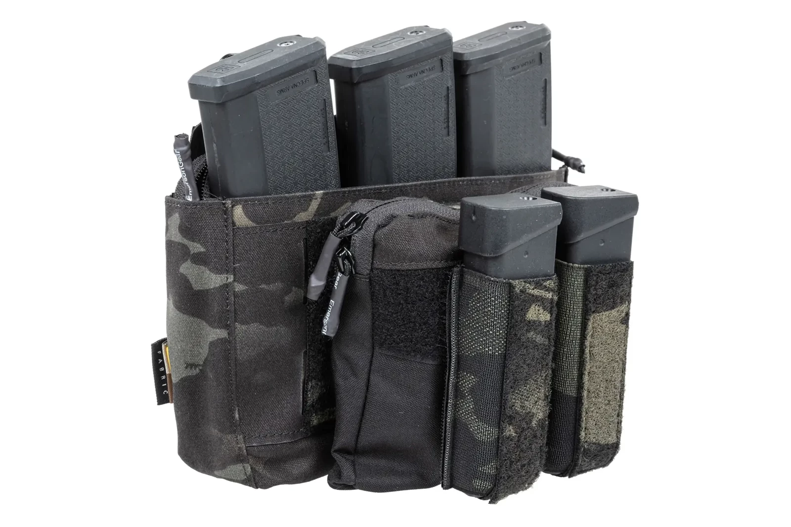 W zestawie dołączono dodatkowo kieszonkę zamykaną na zamek błyskawiczny wraz z ładownicą na dwa magazynki pistoletowe. Użytkownik może bez problemu przypiąć kieszonkę do rzepa na przodzie panelu lub wykorzystać wspomnianą już przegrodę. Tył produktu posiada obszerny rzep, który umożliwi montaż na np. Plate Carrierze.