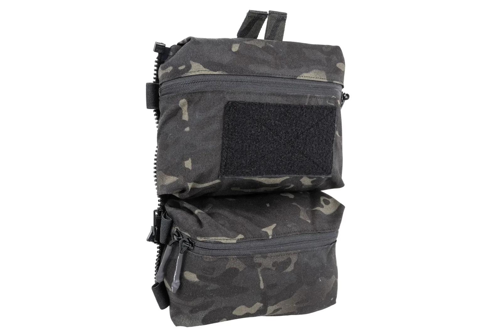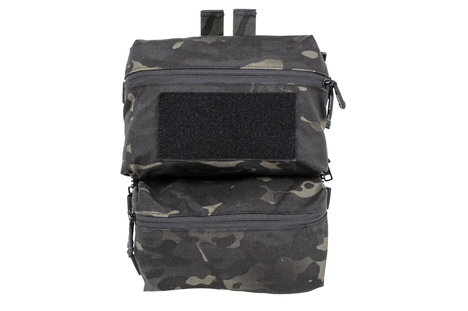 Praktyczny i wytrzymały panel posiada dwie niezależne kieszenie zamykane na dwukierunkowe zamki błyskawiczne YKK.