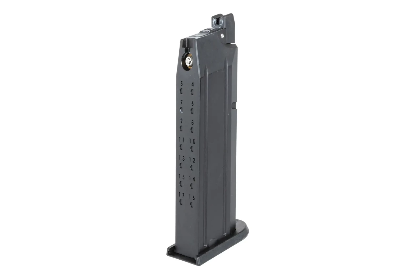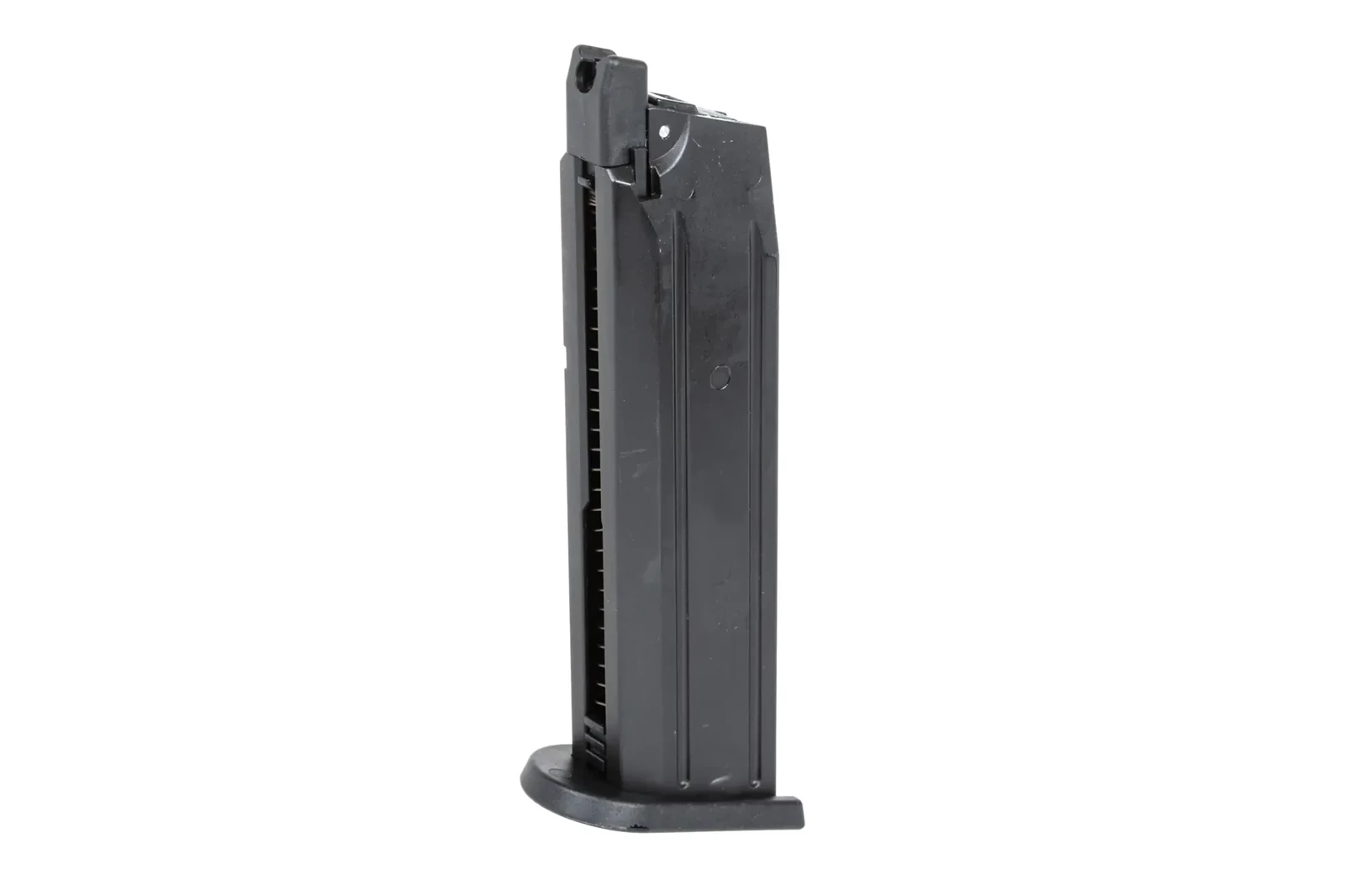 Magazynek wykonany z metalu (korpus) oraz tworzywa (stopka), zasilany jest Green Gasem, mieści 24 kulki