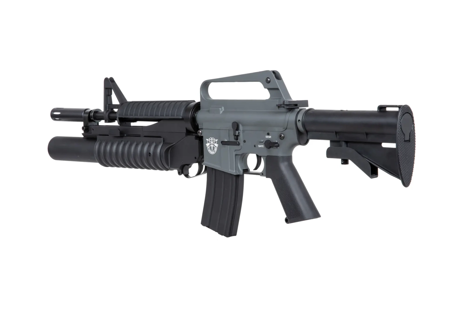 Karabinek wykonany z metalu i tworzywa sztucznego, jest repliką karabinka XM177E1 wraz z dołączonym do niego granatnikiem ASG. Karabinek został wyposażony w funkcjonalny bolt-catch, chwyt o chropowatej powierzchni - przydatnej zwłaszcza w upalne dni, regulowaną kolbę oraz magazynek typu hi-cap.