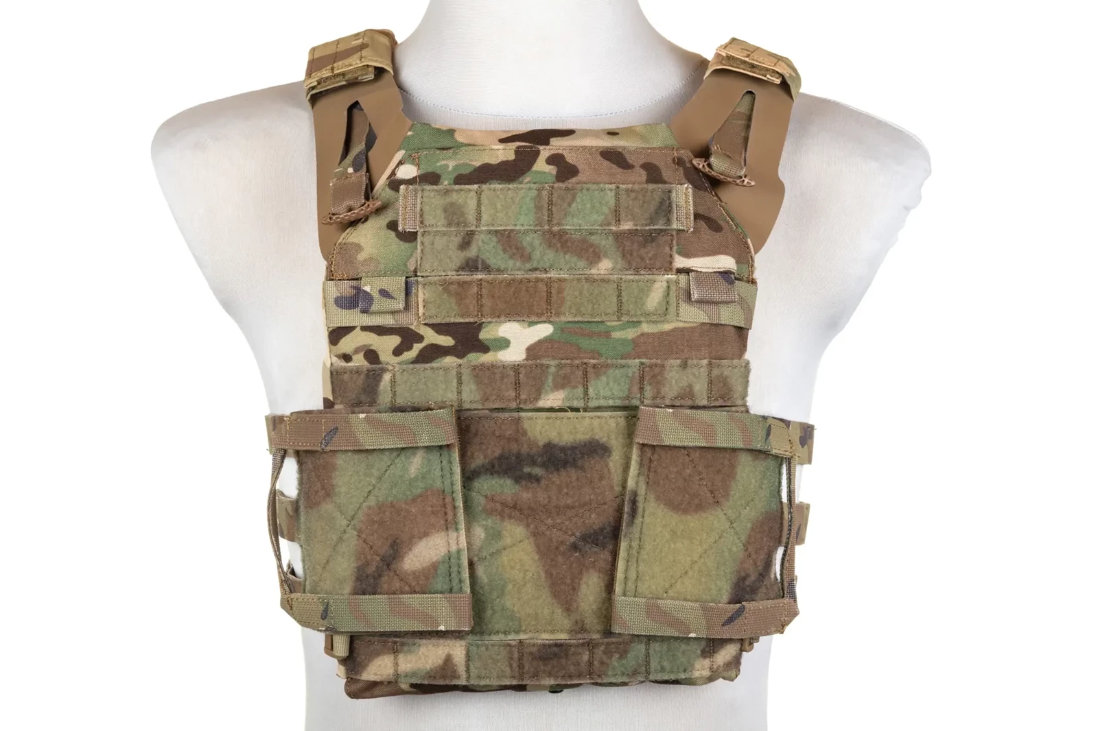 Na przednim oraz tylnym panelu kamizelki znajdziemy wstawki z siatki dystansowej, na ramionach znajdują się regulowane comfort-pady, poprawiające wygodę noszenia nawet mocno obciążonej ekwipunkiem i magazynkami kamizelki.