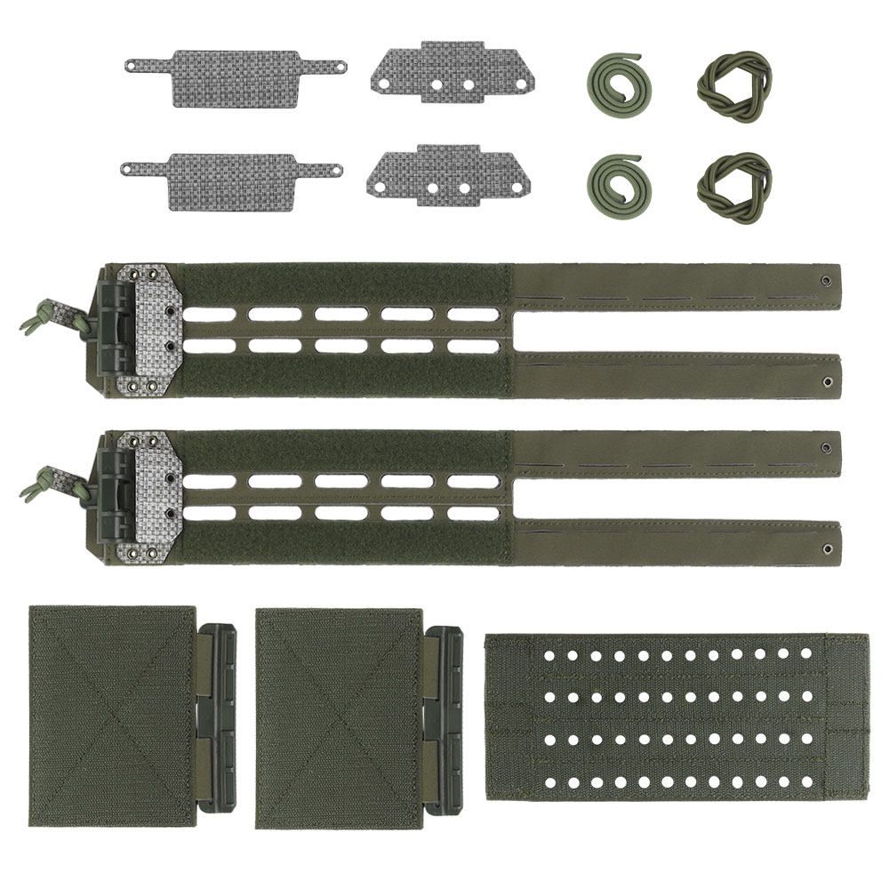 Zestaw uniwersalnych, odchudzonych cummerbundów produkcji Wosport. Cummerbundy zostały wykonane z laminatu Cordura 500D oraz wyposażone w 6 rzędów molle laser cut i zapięcia QD.