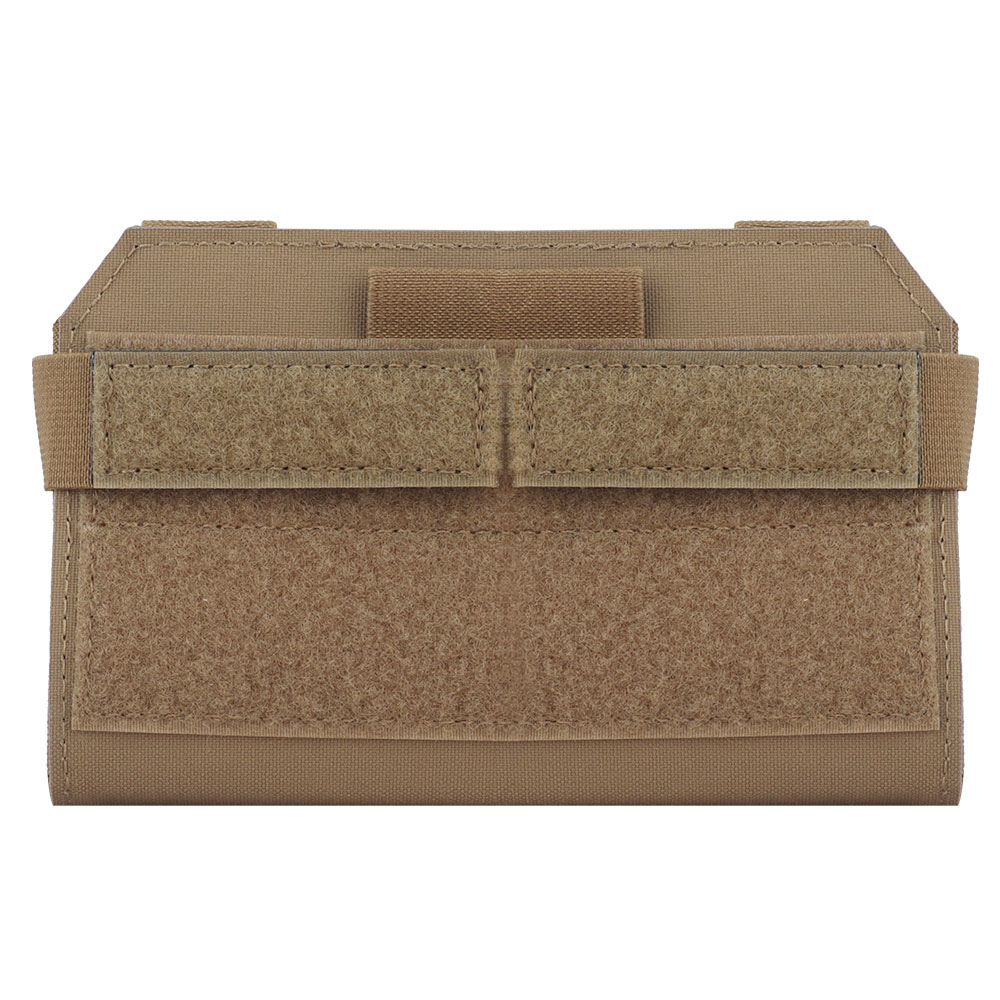 Składany, montowany na molle uchwyt na telefon wykonany z Cordury 500DModel został wyposażony w panel na naszywki oraz zabezpieczenie. Po otworzeniu panelu oczom ukazuje się panel z panelem rzepowym i elastycznymi taśmami, panel ten idealny będzie do zaczepienia bezpiecznego przenoszenia smartfona lub nawigatora.