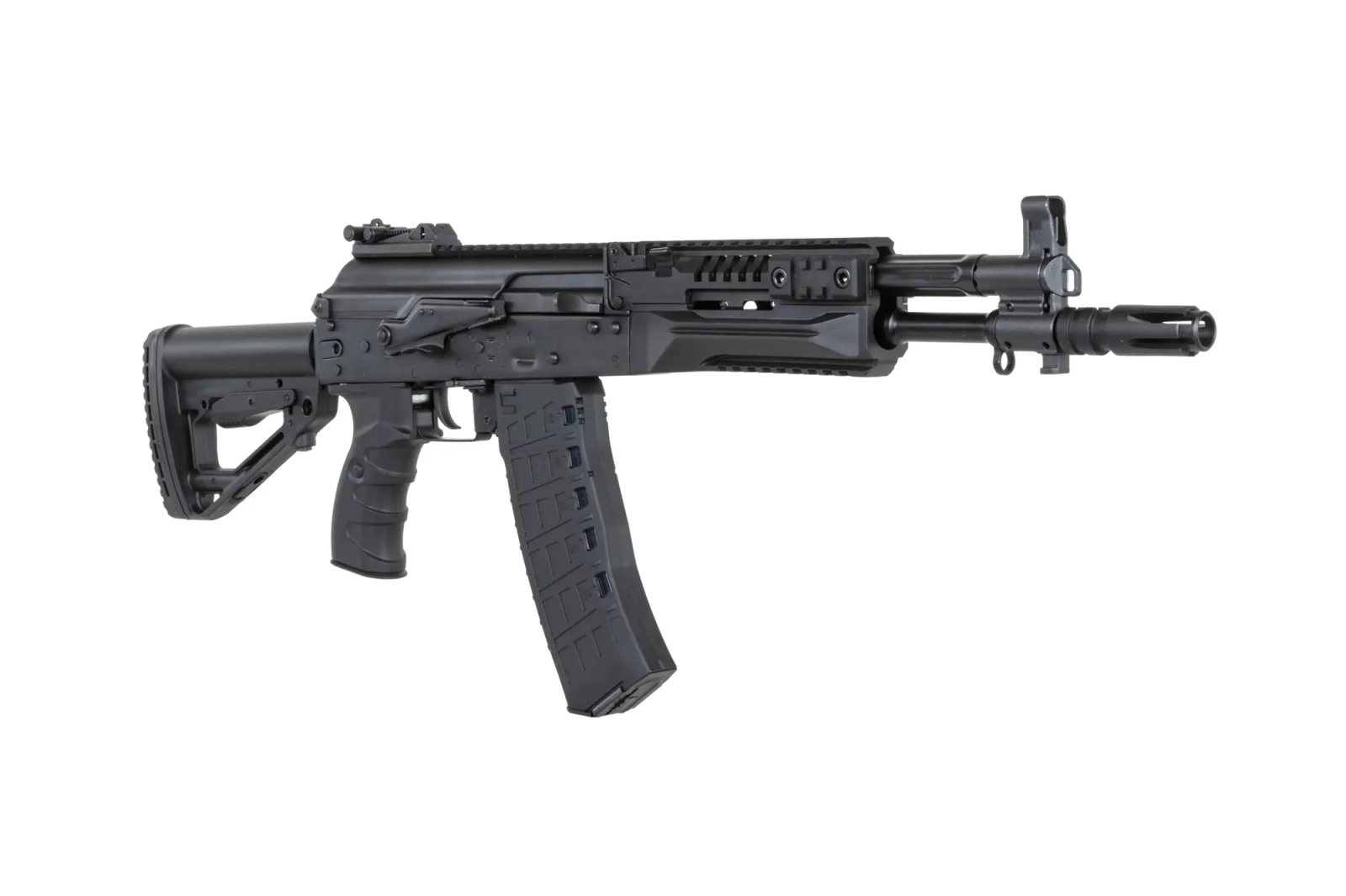 Replika skróconej wersji karabinka AK-12 produkcji Arcturus. AK12K zostało wykonane głownie ze stali oraz nielicznych elementów z aluminium i wytrzymałego polimeru. Ze stali wykonano podstawę muszki z nakrętką przewodu gazowego, rurę gazową, obsadę lufy, pokrywę, atrapę zamka, selektor, mechanizm blokady kolby, język spustowy, zatrzask kolby, zatrzask magazynka oraz atrapę komory zamkowej. Ze aluminium wykonano lufę, 5 pozycyjną prowadnicę kolby, grzbietową szynę RIS oraz tłumik płomienia. Z polimeru wykonano magazynek, kolbę z gumową stopką, chwyt pistoletowy oraz łoże z nakładką rury gazowej.