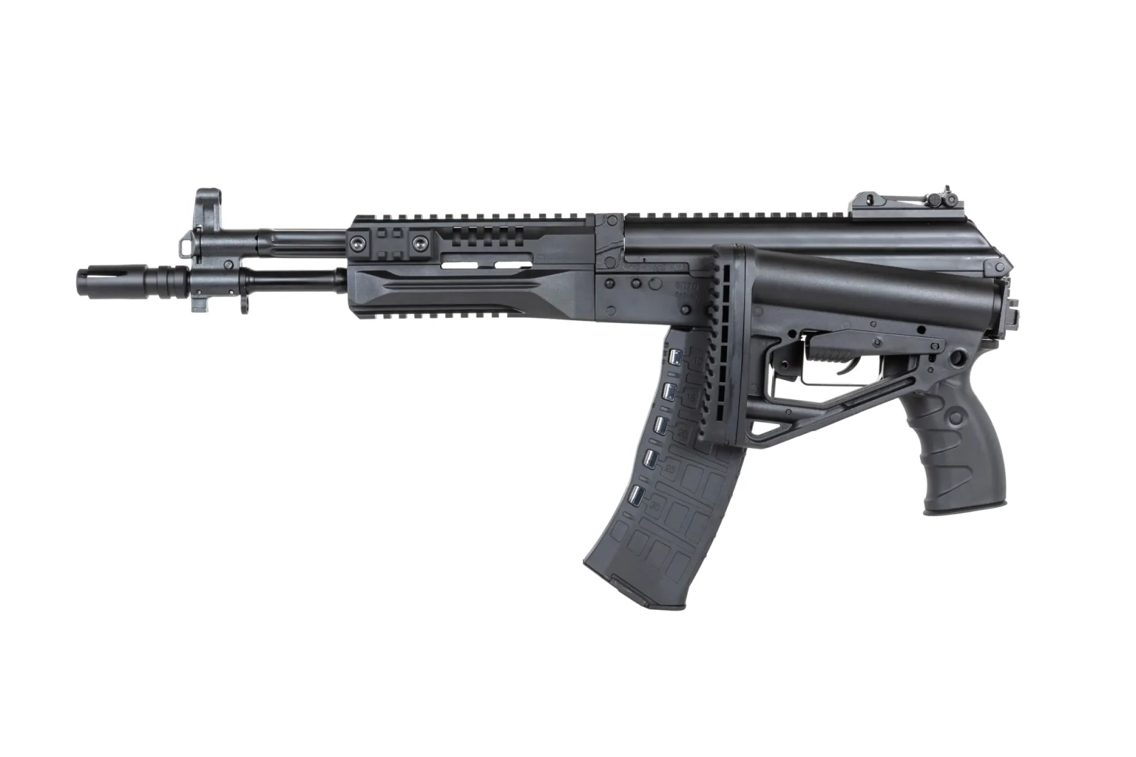 Replika skróconej wersji karabinka AK-12 produkcji Arcturus. AK12K zostało wykonane głownie ze stali oraz nielicznych elementów z aluminium i wytrzymałego polimeru. Ze stali wykonano podstawę muszki z nakrętką przewodu gazowego, rurę gazową, obsadę lufy, pokrywę, atrapę zamka, selektor, mechanizm blokady kolby, język spustowy, zatrzask kolby, zatrzask magazynka oraz atrapę komory zamkowej. Ze aluminium wykonano lufę, 5 pozycyjną prowadnicę kolby, grzbietową szynę RIS oraz tłumik płomienia. Z polimeru wykonano magazynek, kolbę z gumową stopką, chwyt pistoletowy oraz łoże z nakładką rury gazowej.