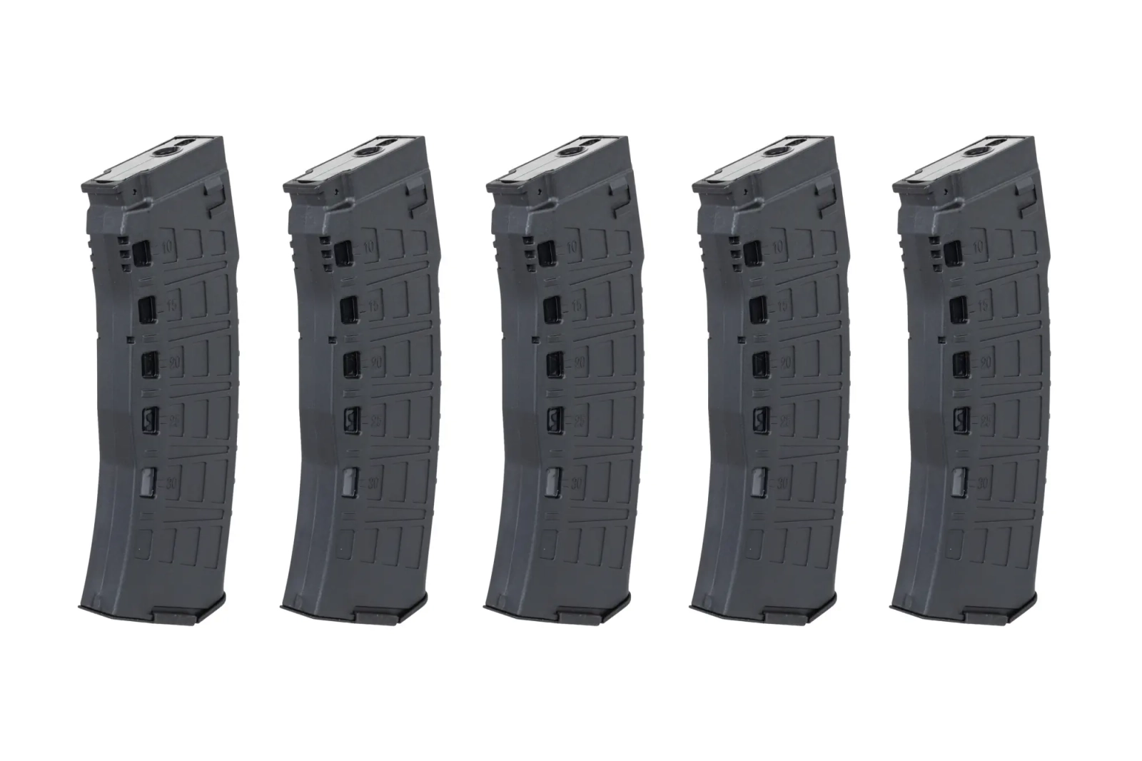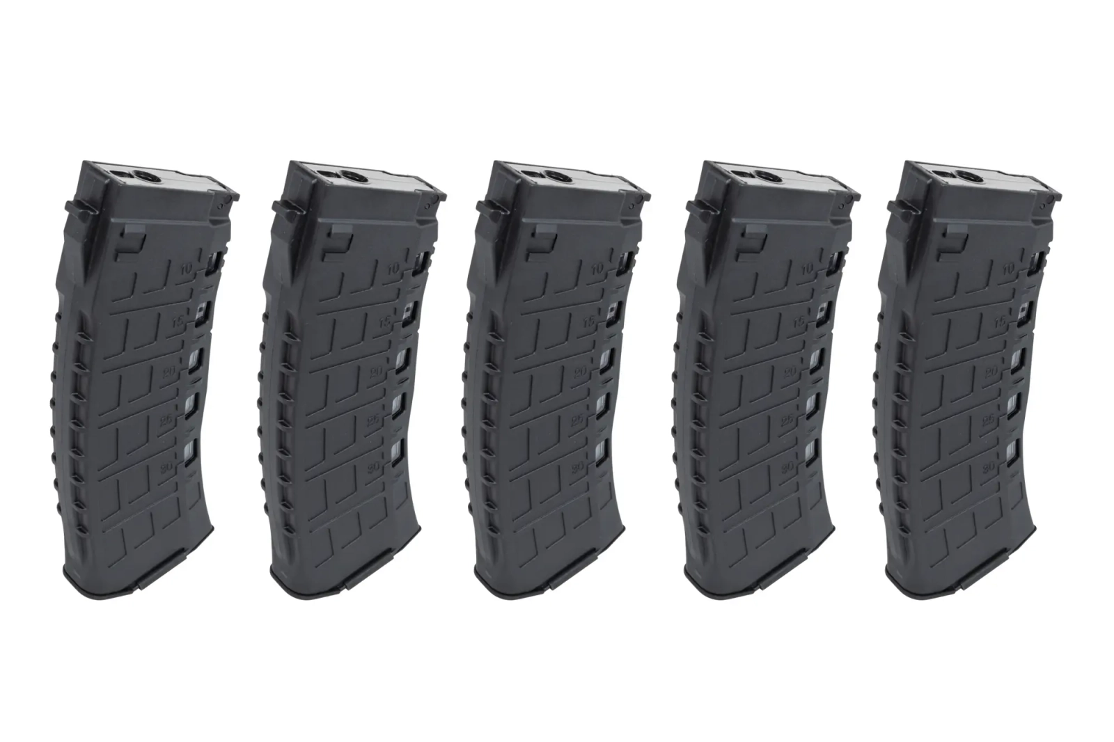 Skorupa magazynka została wykonana ze wzmocnionego polimeru, stopka magazynka została wykonana z czernionej stali. Na szczególną uwagę zasługuje fakt przedłużonego podajnika redukującego ilość kulek pozostawionych w komorze po wystrzeleniu magazynka.