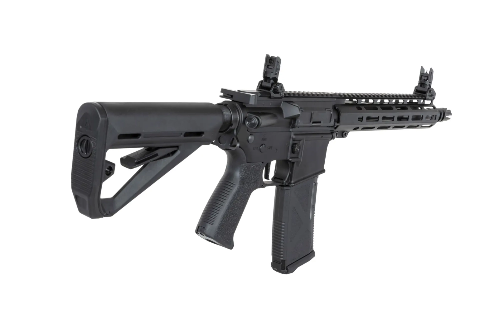 Z tworzywa uświadczymy regulowaną kolbę, chwyt pistoletowy z chropowatą powierzchnią, magazynek typu mid-cap, mechaniczne przyrządy celownicze.