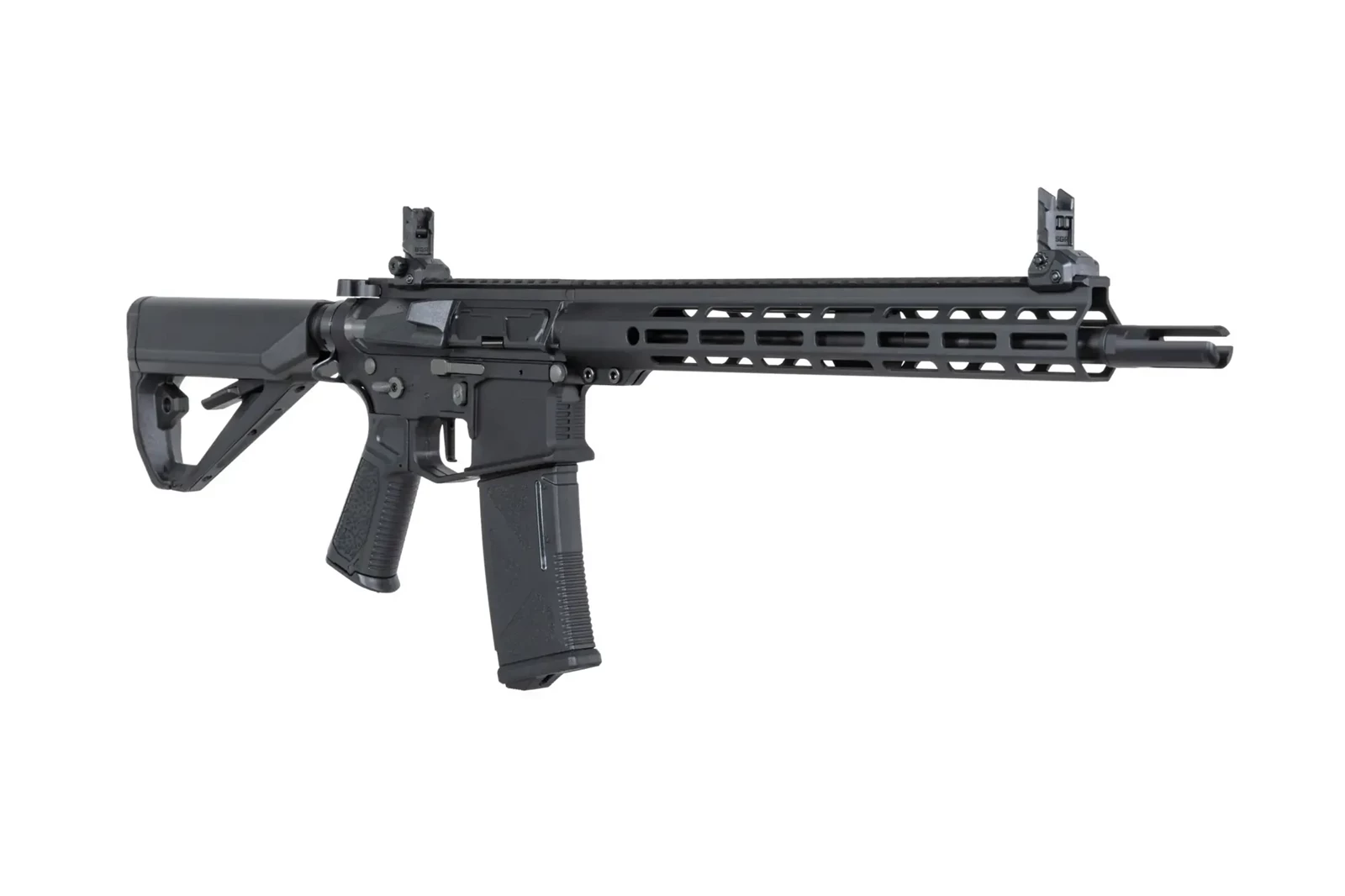 Ze stali wykonano: montaż QD, atrapa suwadła, śruby przy łożu, pierścień mocowania prowadnicy wraz z mocowaniem zawieszenia taktycznego. Z aluminium jest łoże w systemie M-LOK o długości 13.5 cala, szyna RIS na łożu, urządzenie wylotowe, manipulatory (obustronne - selektor, bolt-catch, zatrzask magazynka), atrapa dosyłacza. Z tworzywa wykonany został korpus repliki (nylon PA66 wzmocniony włóknem szklanym), ergonomiczny chwyt pistoletowy, który posiada chropowatą powierzchnie, magazynek typu mid-cap (regulowana pojemność), ergonomiczna, regulowana kolba, w której pomieścimy akumulator oraz składane przyrządy celownicze. Replika jest lekka, dobrze spasowana i wyważona, a jej wnętrze zapewnia bardzo dobre osiągi w fabrycznej konfiguracji oraz dobrą bazę pod tunning.
