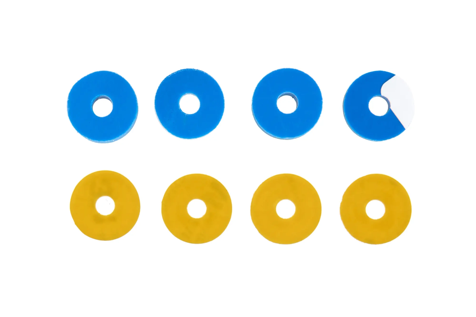 W zestawie znajdują się cztery zderzaki o grubości 3,5mm, 4,2mm, 5,8mm oraz 7,4mm.