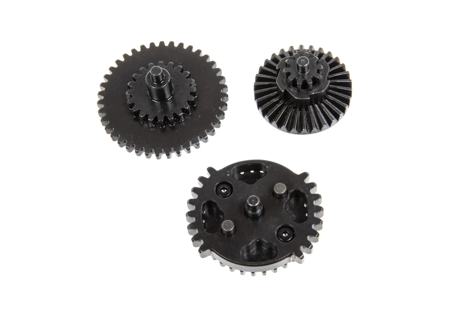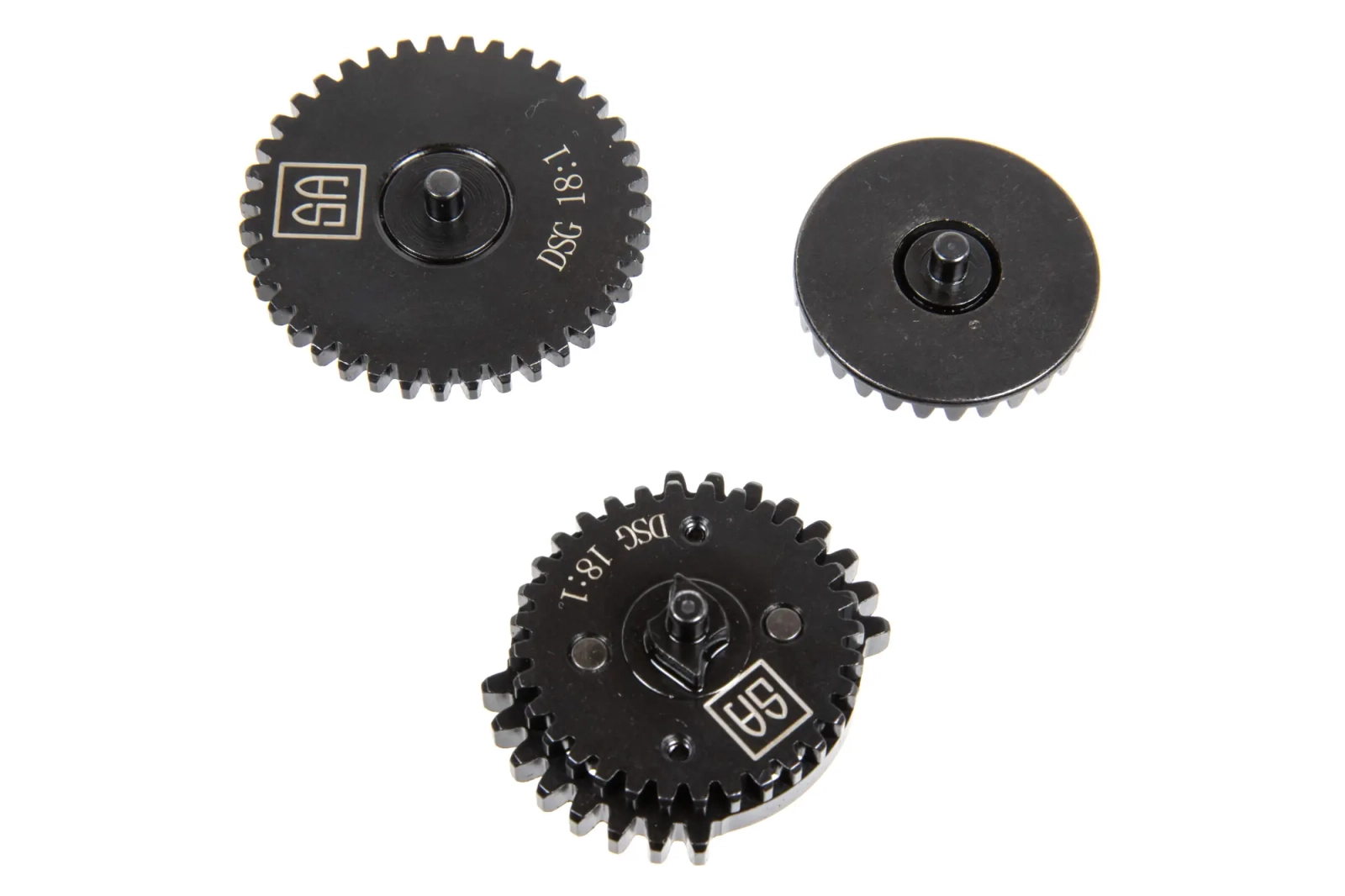 Zestaw stalowych zębatek wysokiej jakości o przełożeniu 9:1 w konfiguracji DSG - Czyli Dual Sector Gear.