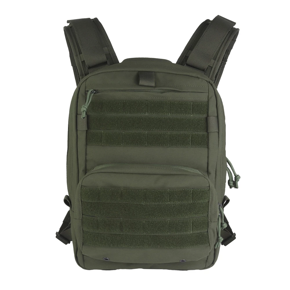 BP-142 został wyposażony w główną komorę zamykaną na zamki błyskawiczne YKK. Wewnątrz komory znajdziemy m.in. 2 kieszenie siatkowe oraz przegrodę, do której można wsadzić płytę SAPI w rozmiarze M. Front plecaka posiada dodatkową kieszeń zamykaną na zamek błyskawiczny YKK. Całość dopełniają 2 panele Molle-velcro, które pozwolą na dalszą rozbudowę plecaka lub umożliwią mocowanie naszywek lub oznaczeń drużyny.