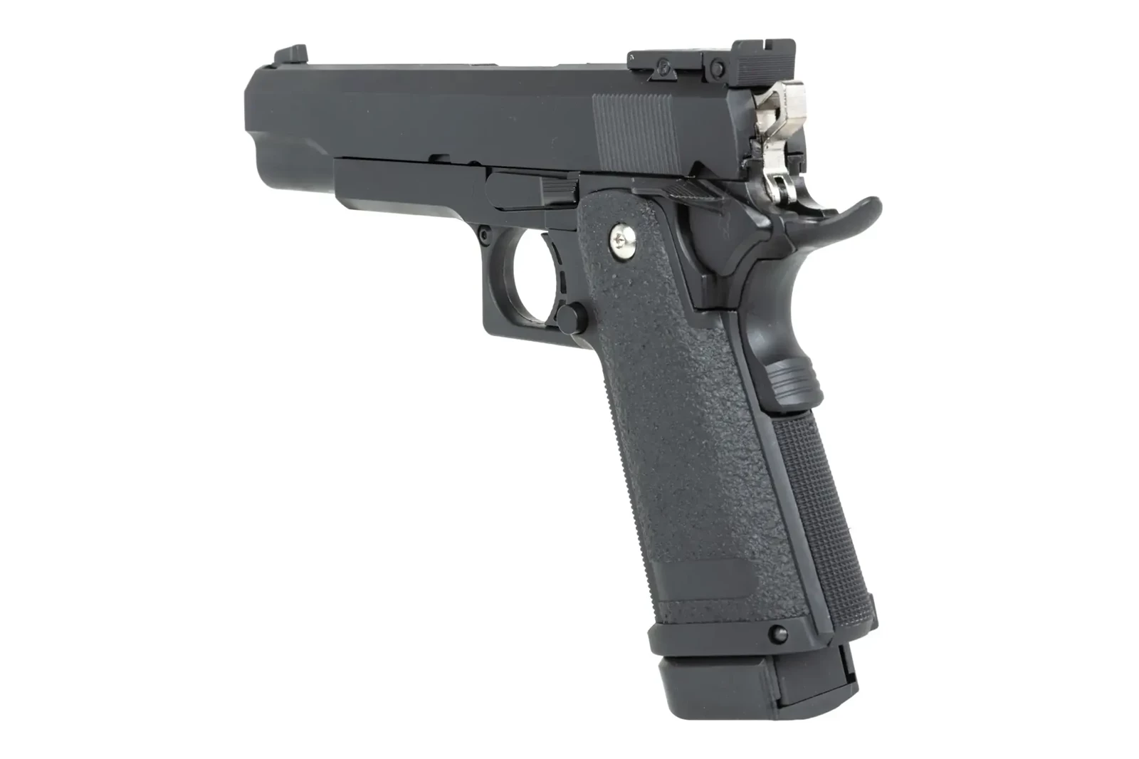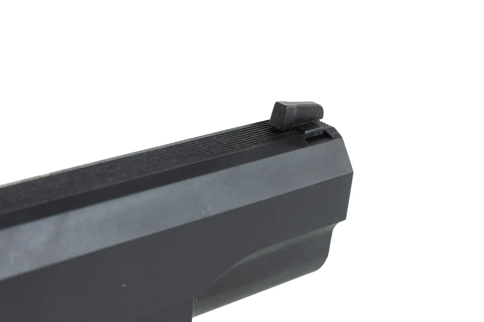 Pistolet ASG zasilany przy pomocy green gasu, został wykonany z metalu oraz tworzywa sztucznego.