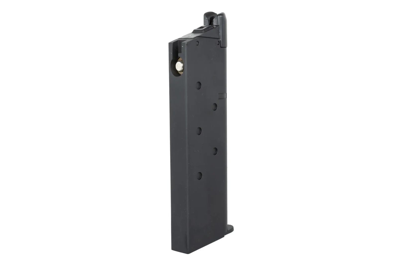 Wykonany głównie z metalu, magazynek zasilany green gasem do replik typu 1911 od producenta E&C. Model pomieści 22 kulki. Magazynek jest kompatybilny replikami od m.in. E&C, TM