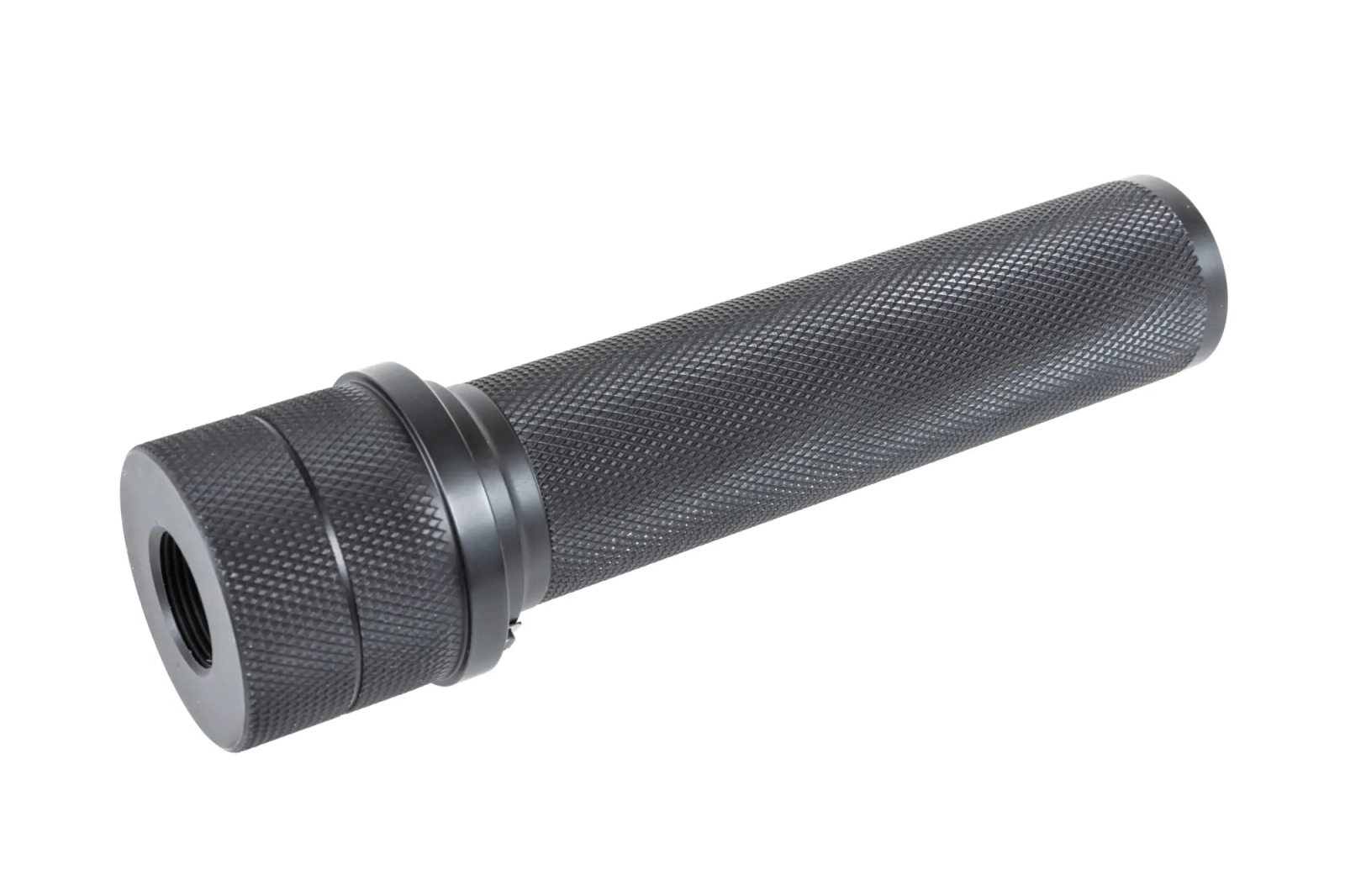 Tłumik można zamocować na replikach wyposażonych w gwint 24mm CW lub 14mm CCW dzięki załączonej do zestawu przejściówki.