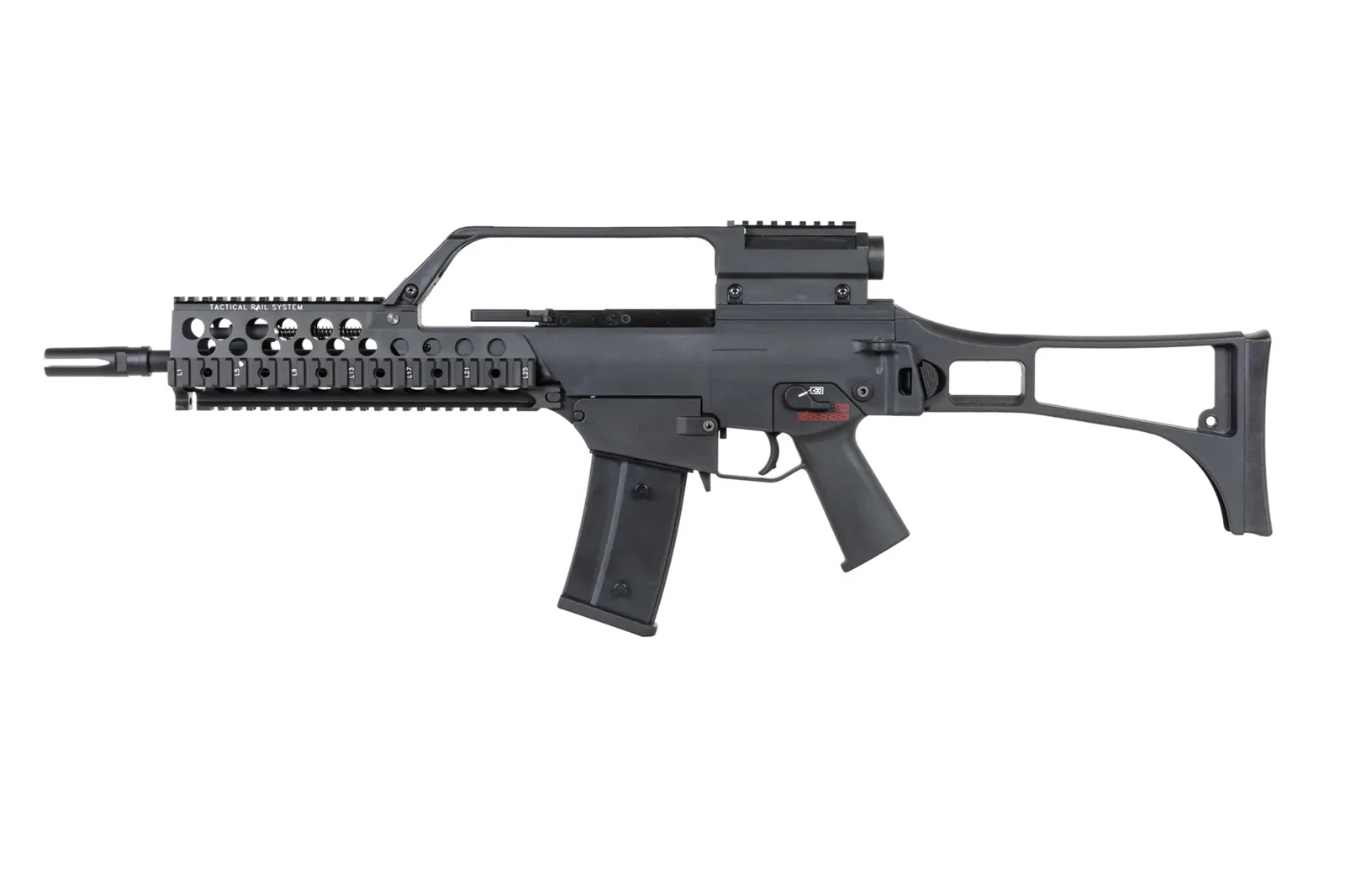 Karabinek ASG SRC DUAL POWER SR36 KSK GB-303  wzorowany na słynnej konstrukcji posiada wspomnianą już lunetę, na której zamontowano dodatkową Szynę RIS. Kolejne 4 szyny RIS stworzone metodą CNC można odnaleźć na łożu karabinka - pozwoli to zamocować na produkcie chwyt pionowy, dwójnóg, laser, latarkę itp. GB-303 posiada składaną na bok kolbę, obustronny selektor ognia oraz obustronną rączkę przeładowania.