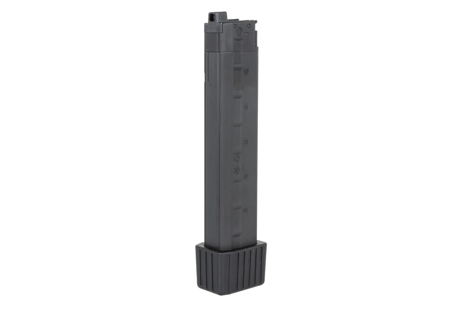 Magazynek do replik APC9 mieści 30 kulek, zasilany jest przy pomocy green gasu. Oprócz metalowej obudowy, posiada gumową stopkę, która umożliwi szybką i sprawną wymianę, nawet podczas noszenia rękawiczek.