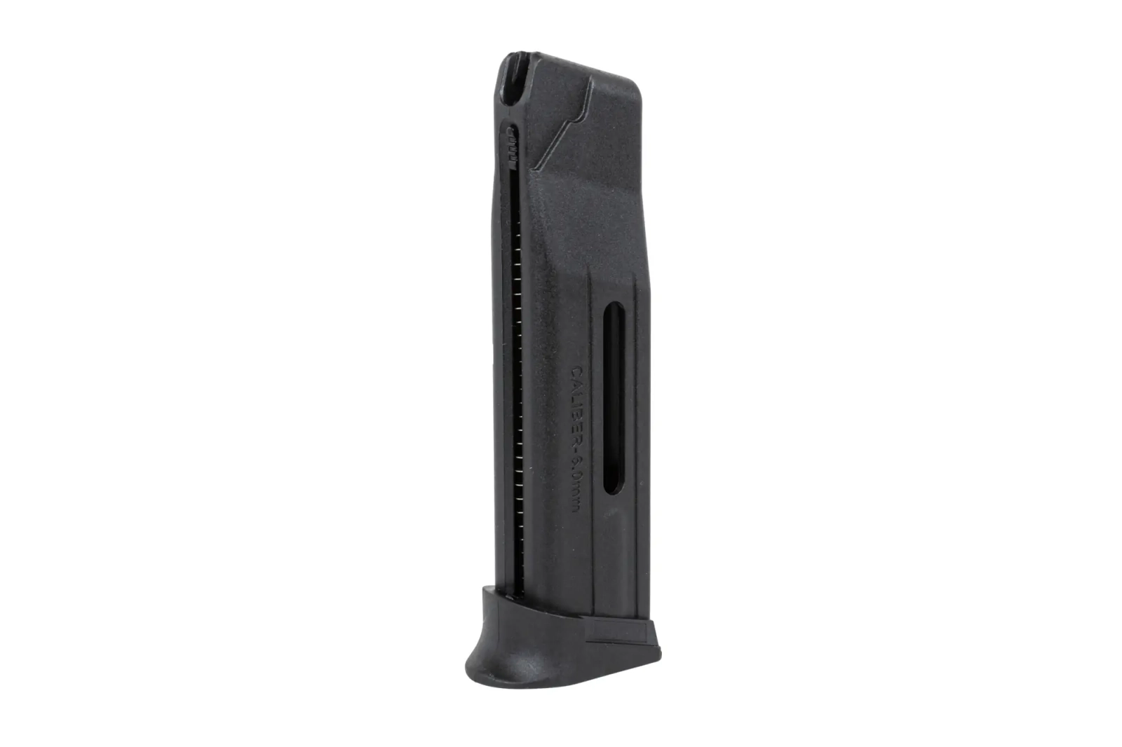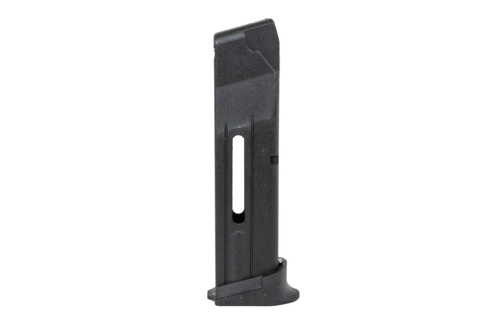 Wykonany z wytrzymałego polimeru przy współpracy Cybergun oraz Swiss Arms, magazynek zasilany kapsułą CO2 na 15 kulek do pistoletów airsoftowych SAP 2022.