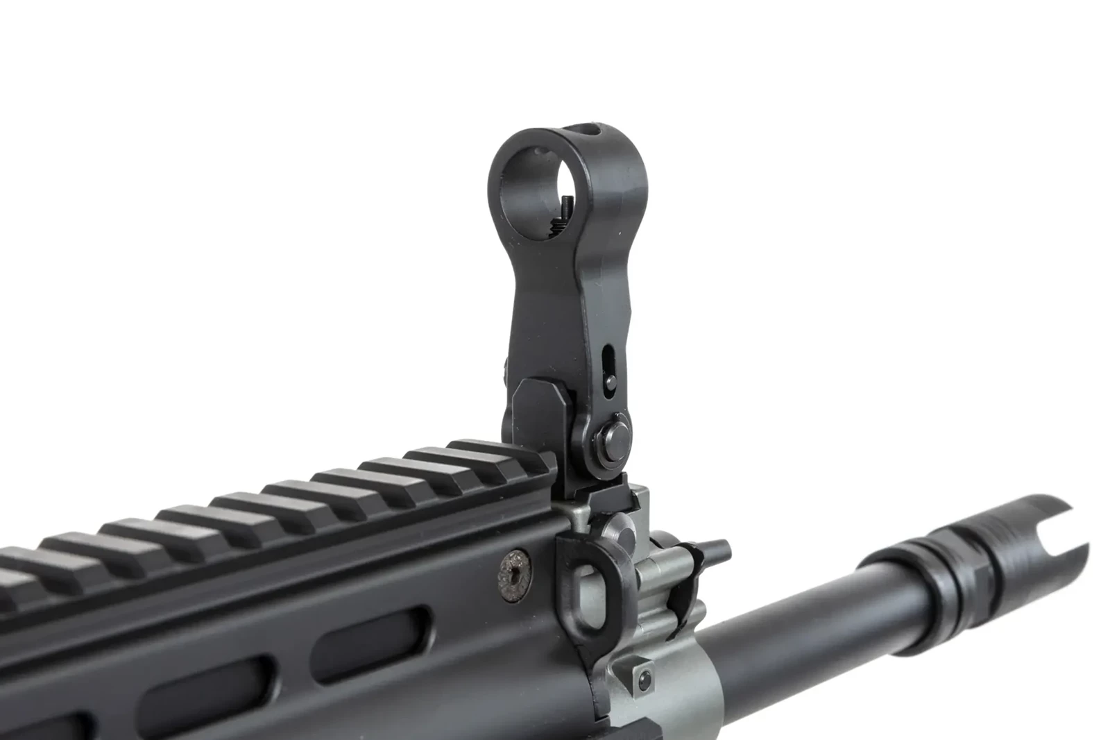 Ze stali wykonano: tłumik płomienia, rączkę przeładowania, przeziernik, piny oraz śruby. Z aluminium uświadczymy korpus repliki (górną część), lufę zewnętrzną, atrapę bloku gazowego, górną i dolną szynę RIS (które umożliwią montaż np. optyki czy chwytu pionowego), manipulatory tj. bolt-catch oraz dźwignia blokady magazynka, magazynek oraz muszkę. Z tworzywa wykonano korpus (dolną część), boczne szyny RIS, chwyt pistoletowy, selektor ognia oraz regulowaną kolbę (którą można złożyć na bok). Kolba została wyposażona w bakę paliczkową, której wysokość można dostosować do preferencji strzelca.