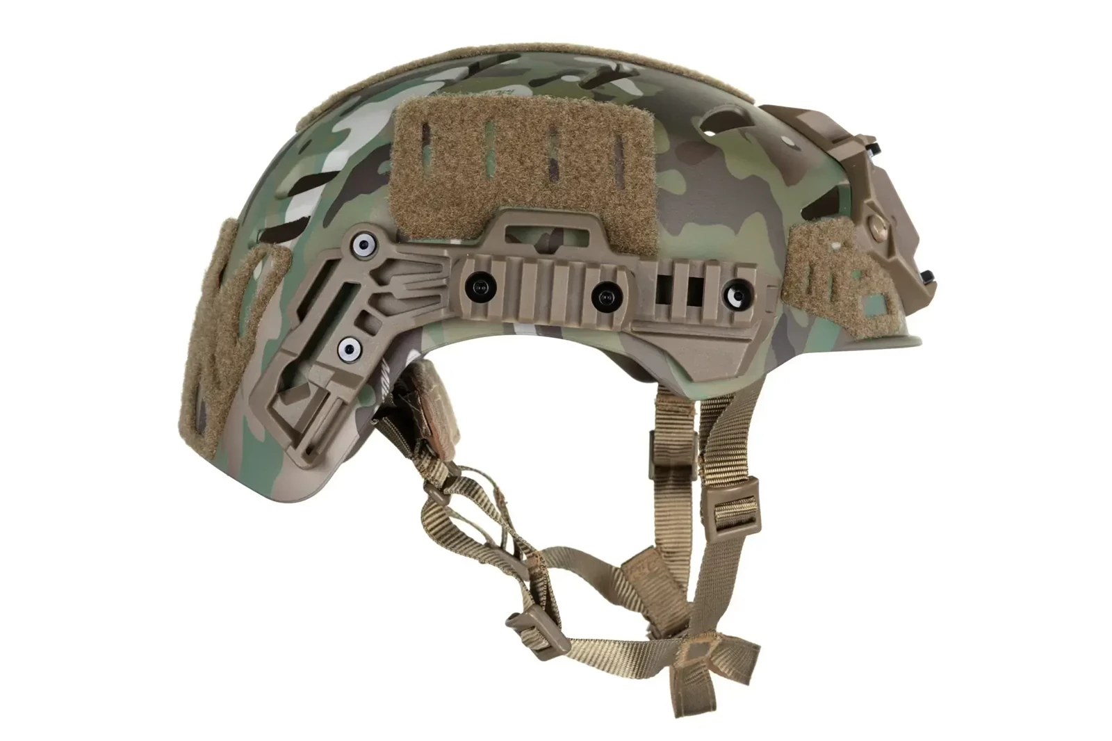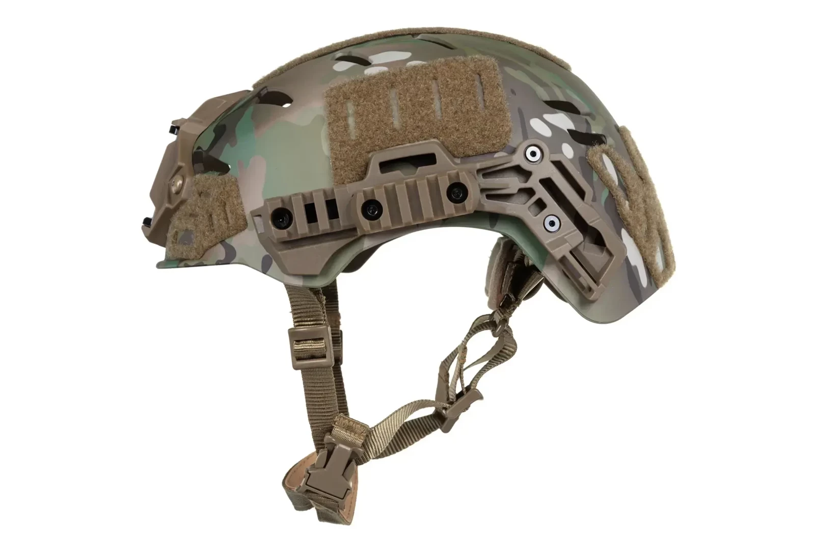 Po bokach znajdują się szyny montażowe, które pozwolą na zamontowanie dodatkowego wyposażenia np. słuchawki. Front repliki ma mocowanie na urządzenia NVG. W zestawie znajdziemy również linki odciągowe. Na sporej powierzchni skorupy hełmu znajdują się rzepy, które pozwolą na mocowanie naszywek typu morale-patch, oznaczeń, znaczników typu e-lite, etc.