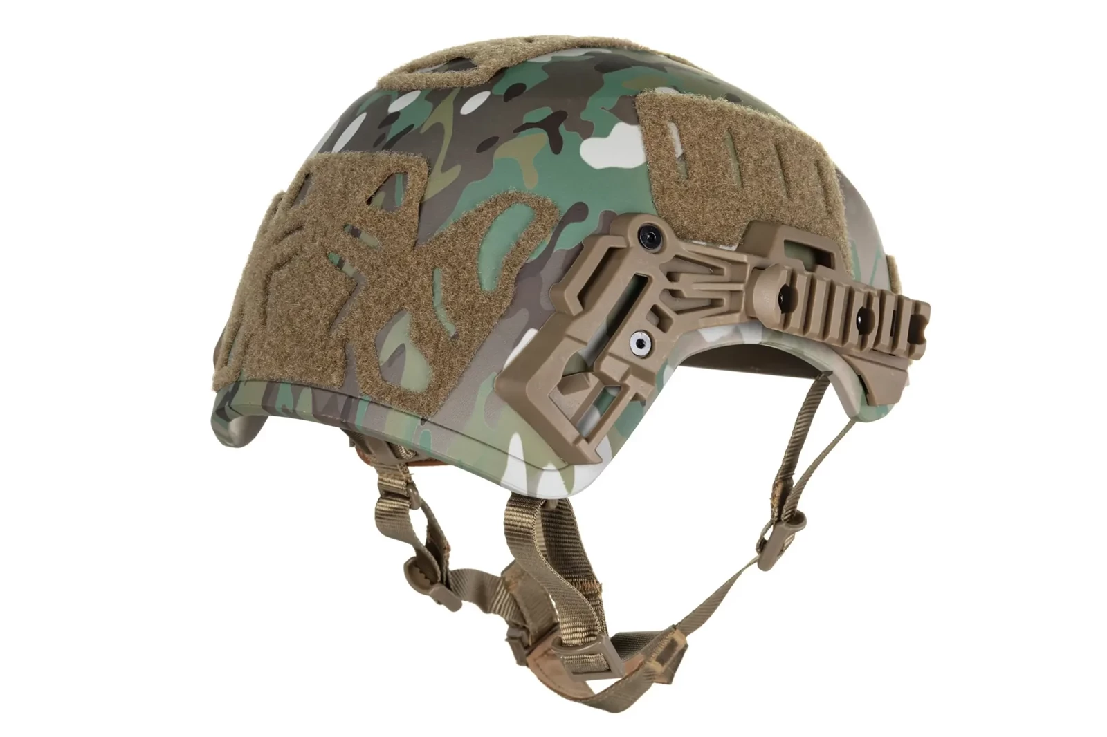 Po bokach znajdują się boczne szyny montażowe, które pozwolą na zamontowanie dodatkowego wyposażenia np. słuchawki. Front repliki ma mocowanie na urządzenia NVG. W zestawie znajdziemy również linki odciągowe. Na sporej powierzchni skorupy hełmu znajdują się rzepy, które pozwolą na mocowanie naszywek typu morale-patch, oznaczeń, znaczników typu e-lite, etc.