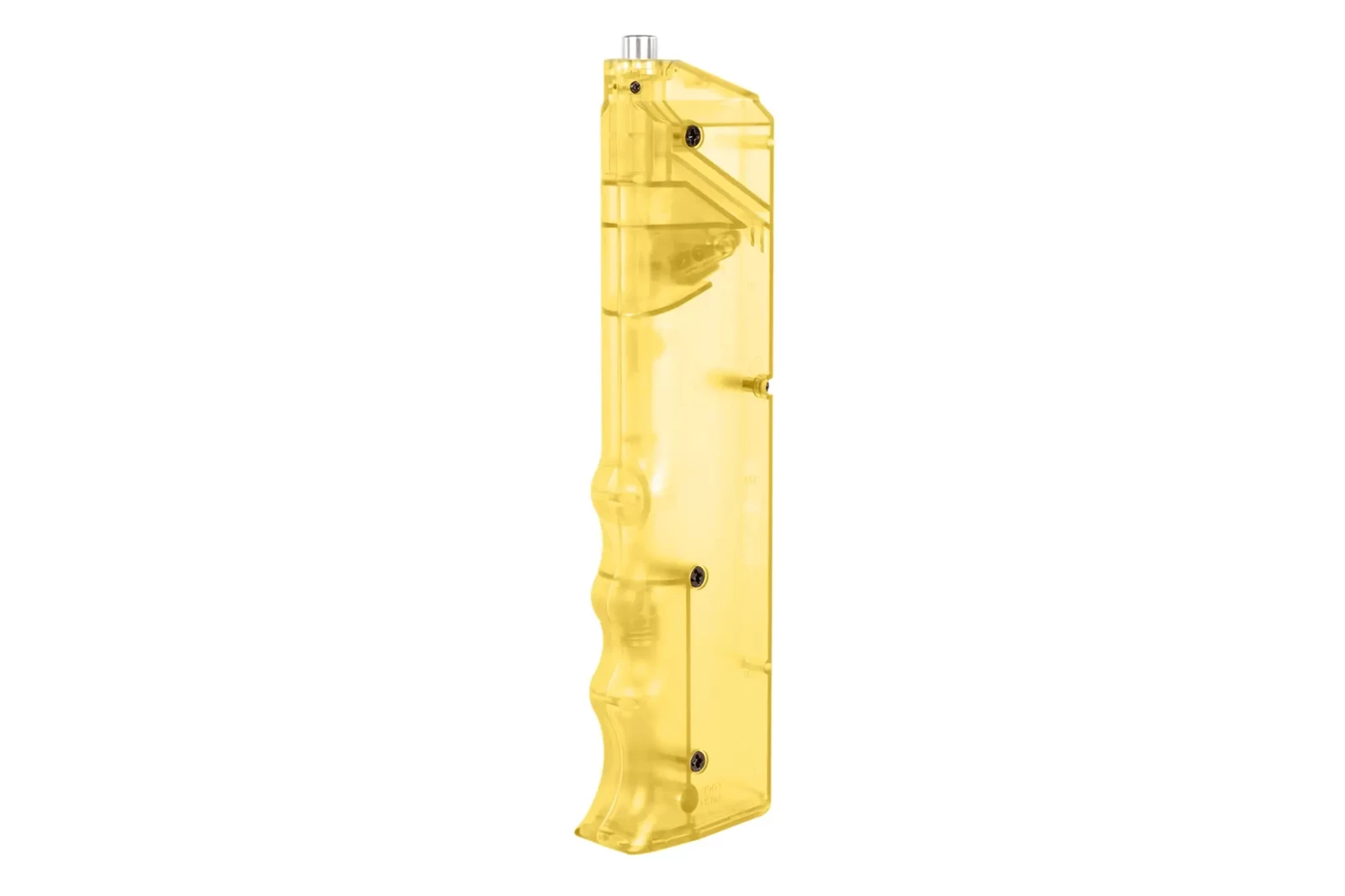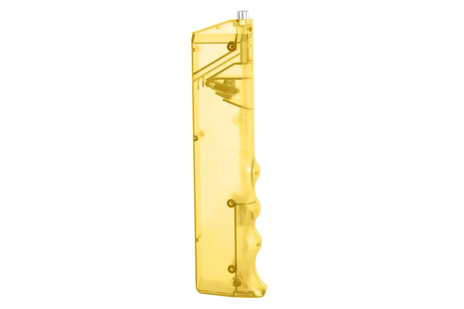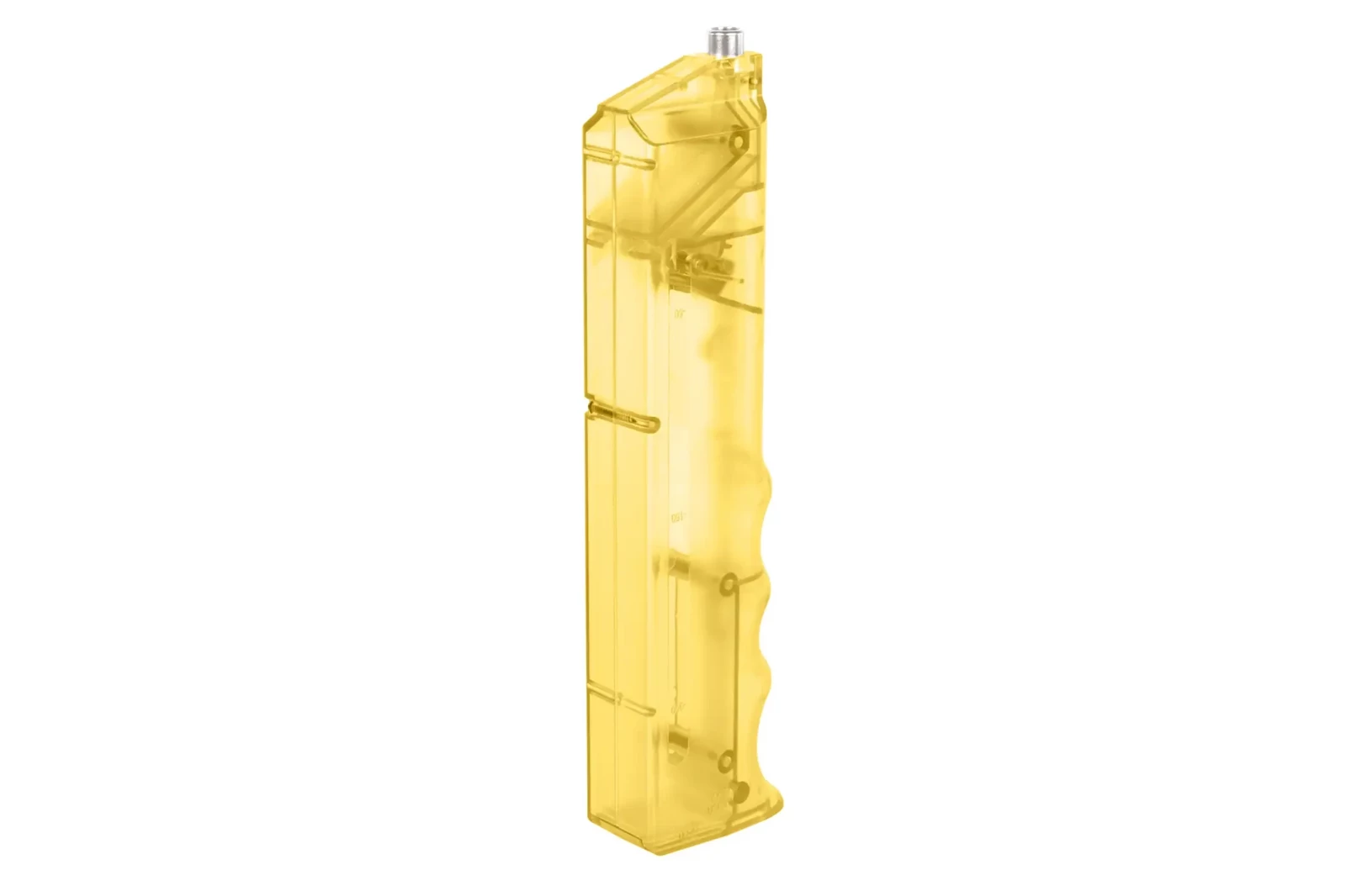 Wykonana z wytrzymałego i przeźroczystego tworzywa szybkoładowarka od producenta Wosport. Jednorazowo model jest w stanie pomieścić ok. 300 kulek. Bez problemu będzie w stanie naładować magazynki typu real/low/mid-cap. W zestawie dołączono dodatkowe przejściówki. Szybkoładowarka ma kształt magazynka do PMu, więc będzie można ją przenosić w odpowiednich ładownicach.