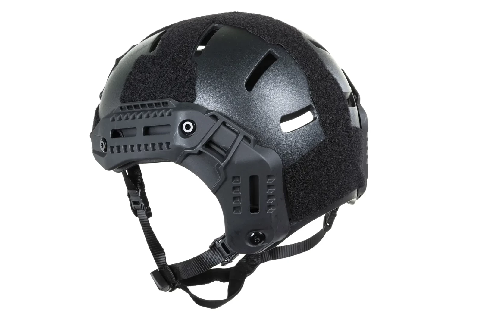 Po bokach znajdują się szyny montażowe, które pozwolą na zamontowanie dodatkowego wyposażenia np. słuchawki. Front repliki ma mocowanie na urządzenia NVG. W zestawie znajdziemy również linki odciągowe. Na sporej powierzchni skorupy hełmu znajdują się rzepy, które pozwolą na mocowanie naszywek typu morale-patch, oznaczeń, znaczników typu e-lite, etc.