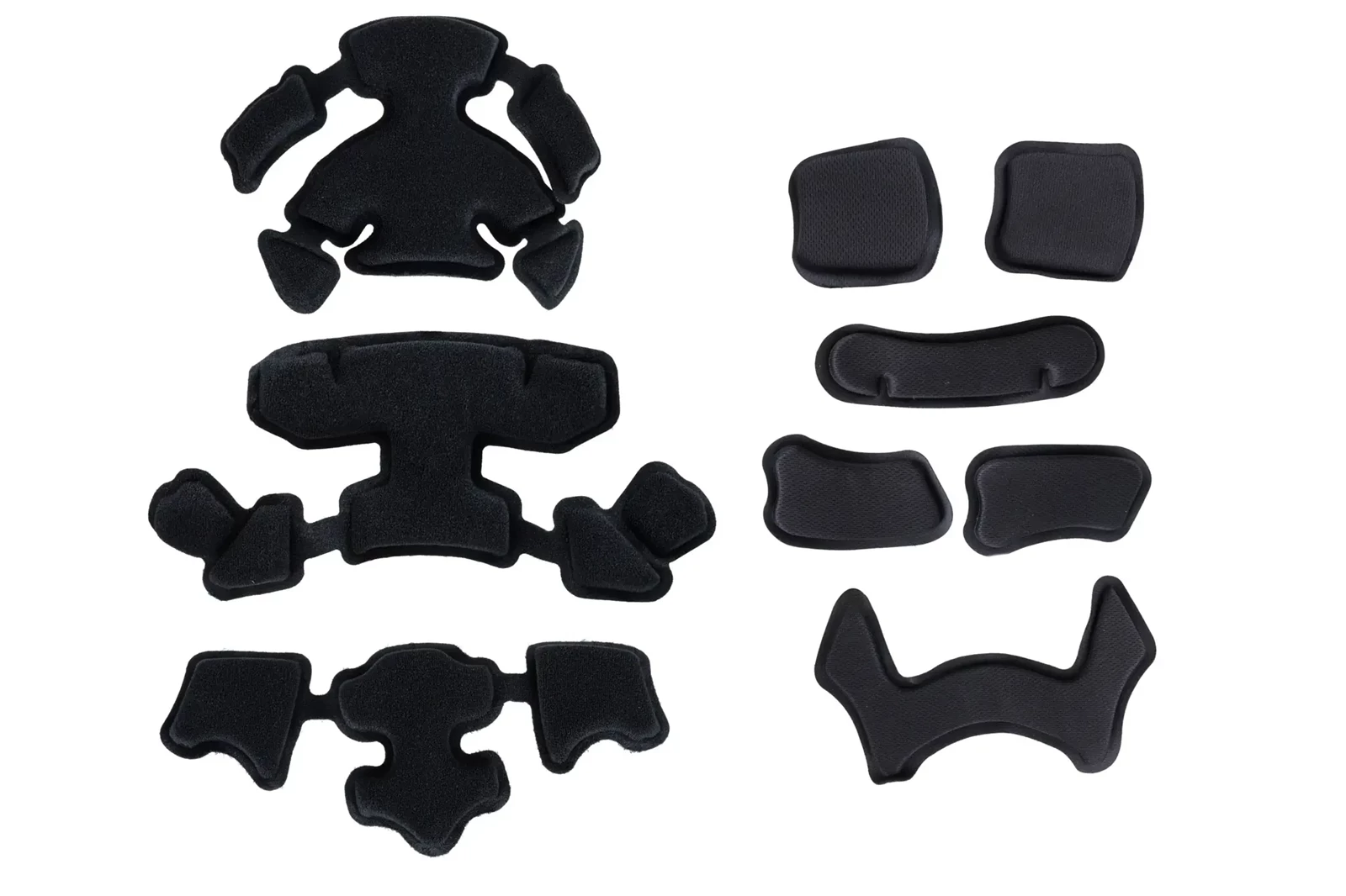 W zestawie znajdziemy zestaw 9 poduszek, które umożliwią dokładne dopasowanie do głowy użytkownika i zwiększą komfort noszenia oraz dodatkowe boczne szyny RIS.