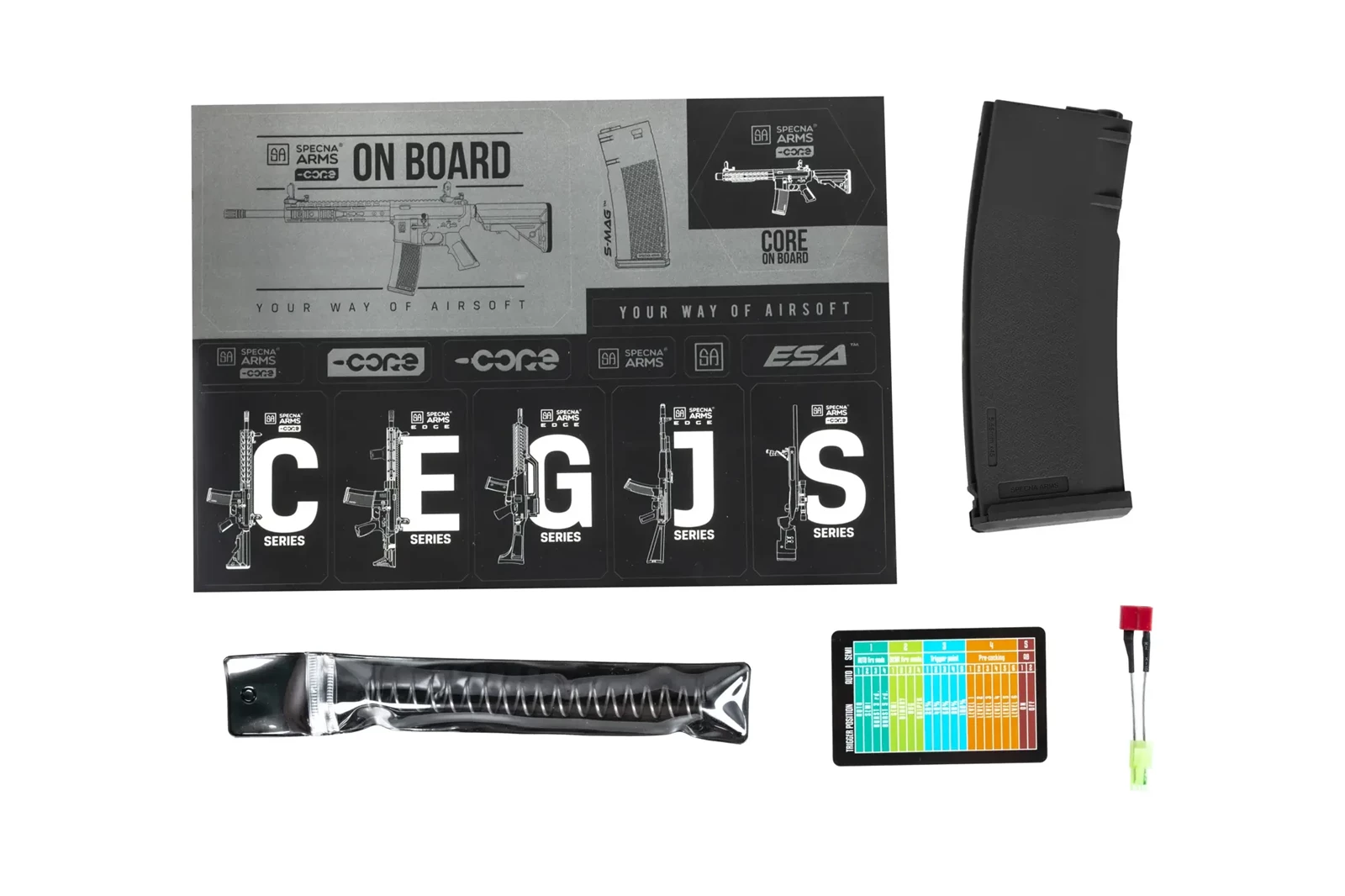 Specna Arms wychodząc naprzeciw oczekiwaniom klientów prezentuje linię CORE™ - wyjątkową serię replik, która wprowadza nową jakość na rynku. Atrakcyjna cena w połączeniu z wysokiej jakości materiałami sprawia, że jest to seria zarówno dla początkujących jak i wytrawnych airsoftowych graczy. W zestawie dołączono wbudowany układ HAL™. Układ kontroli spustu wspomaga działanie repliki oraz umożliwia programowanie funkcji w łatwy sposób przy użyciu spustu oraz selektora.