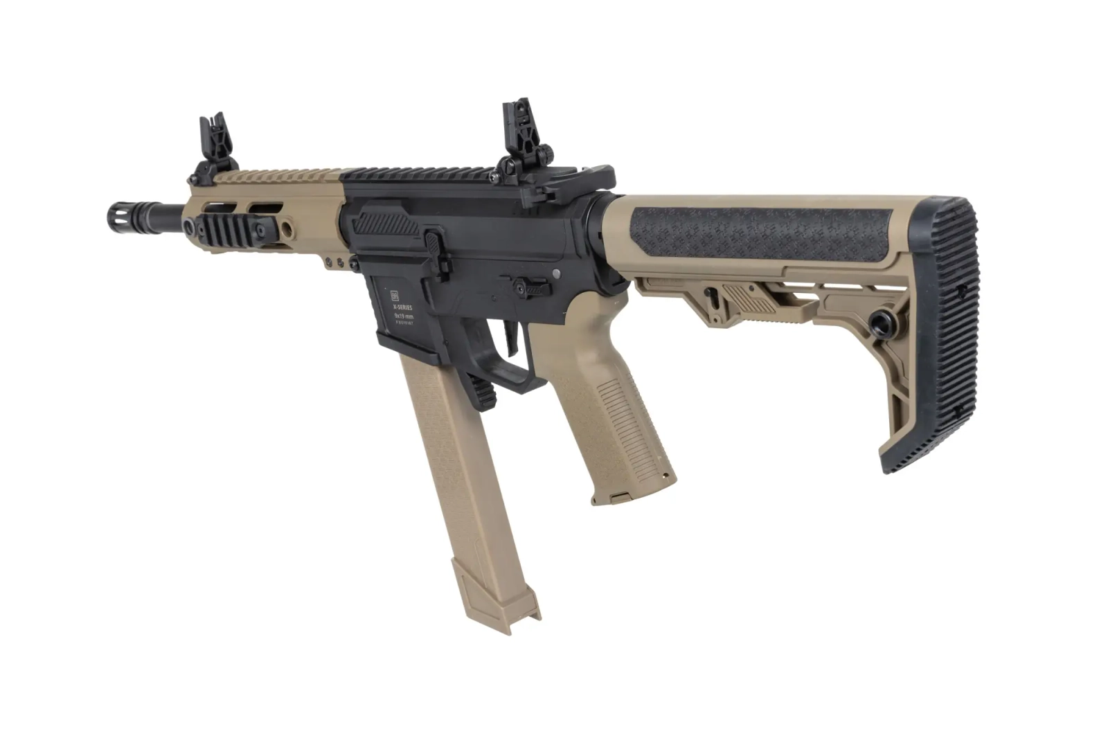 Seria X to odpowiedź Specna Arms na bardzo popularny trend replik pistoletów maszynowych na bazie AR-15. Dzięki kompaktowym rozmiarom i solidnym wykonaniu, replika jest bardzo dobrym wyborem do rozgrywek CQB. Ponadto, replika może sprawdzić się w roli zapasu dla snajpera czy operatora RKM. Co więcej wzmocnienie włóknem nylonowym sprawia, że konstrukcja jest wytrzymalsza od pozostałych konstrukcji polimerowych.