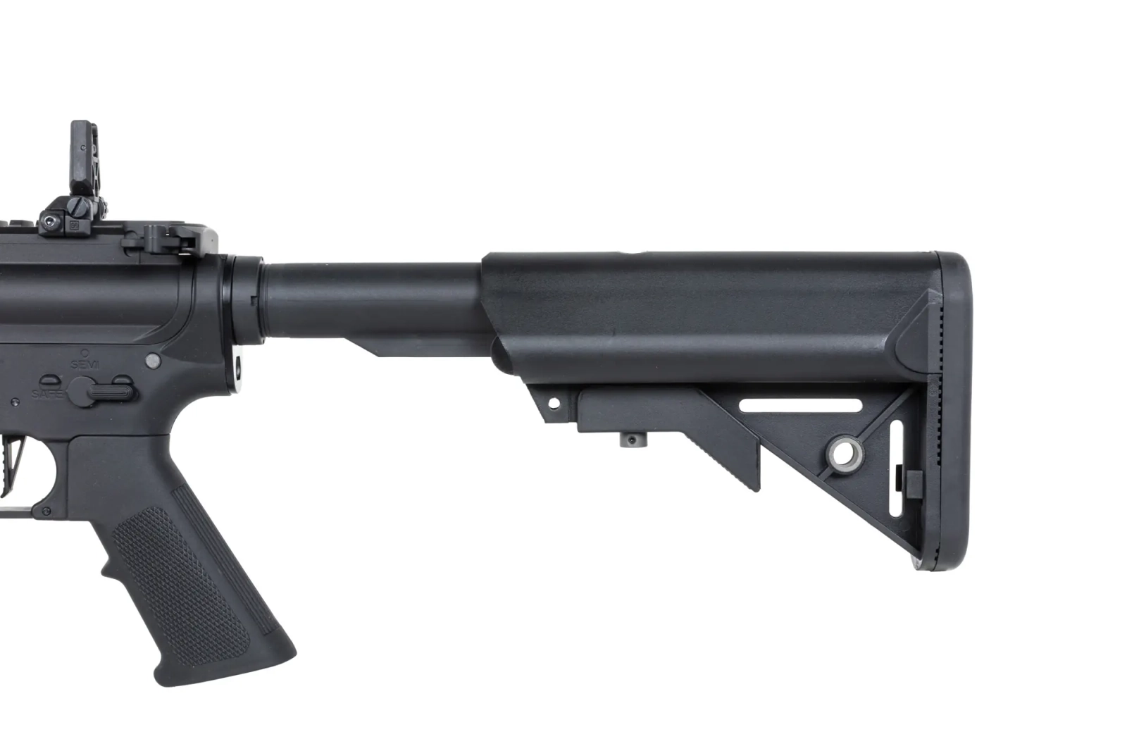 Replika wyposażona została w grzbietową szynę RIS 22 mm oraz regulowaną kolbę. Dzięki rozsuwanej kolbie zakończonej stopką o antypoślizgowej fakturze, możliwe jest dostosowanie długości repliki do budowy oraz preferencji strzelca. Tłumik płomienia osadzony został na 14-milimetrowym lewoskrętnym gwincie.