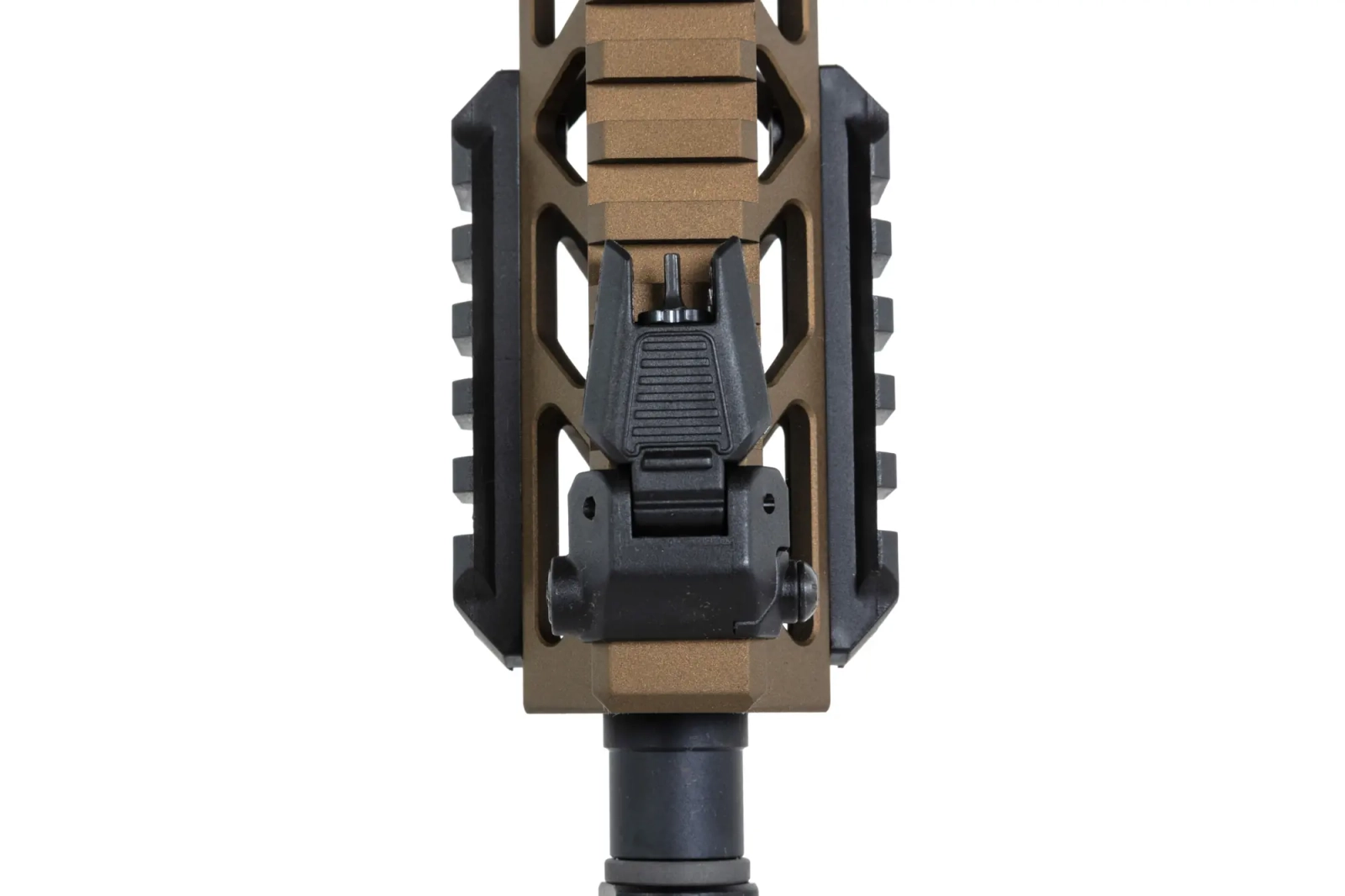 Replika wyposażona została w frontową szynę RRA Lightweight Free Float Rail w standardzie M-LOK licencjonowaną przez Rock River Arms®