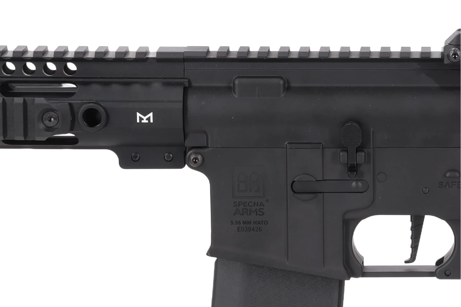 Specna Arms SA-E21 EDGE™ HAL 2 ETU Gen. 2 to wytrzymały, lekki, ergonomiczny karabinek ASG gotowy na wszelkie możliwe scenariusze. Na korpusie umieszczono oznaczenia Specna Arms oraz indywidualny numer seryjny. Warte uwagi detale to chwyt pistoletowy QD, zapewniający łatwy i szybki dostęp do silnika bez konieczności użycia narzędzi oraz obustronne ucho do montażu zawieszenia taktycznego.