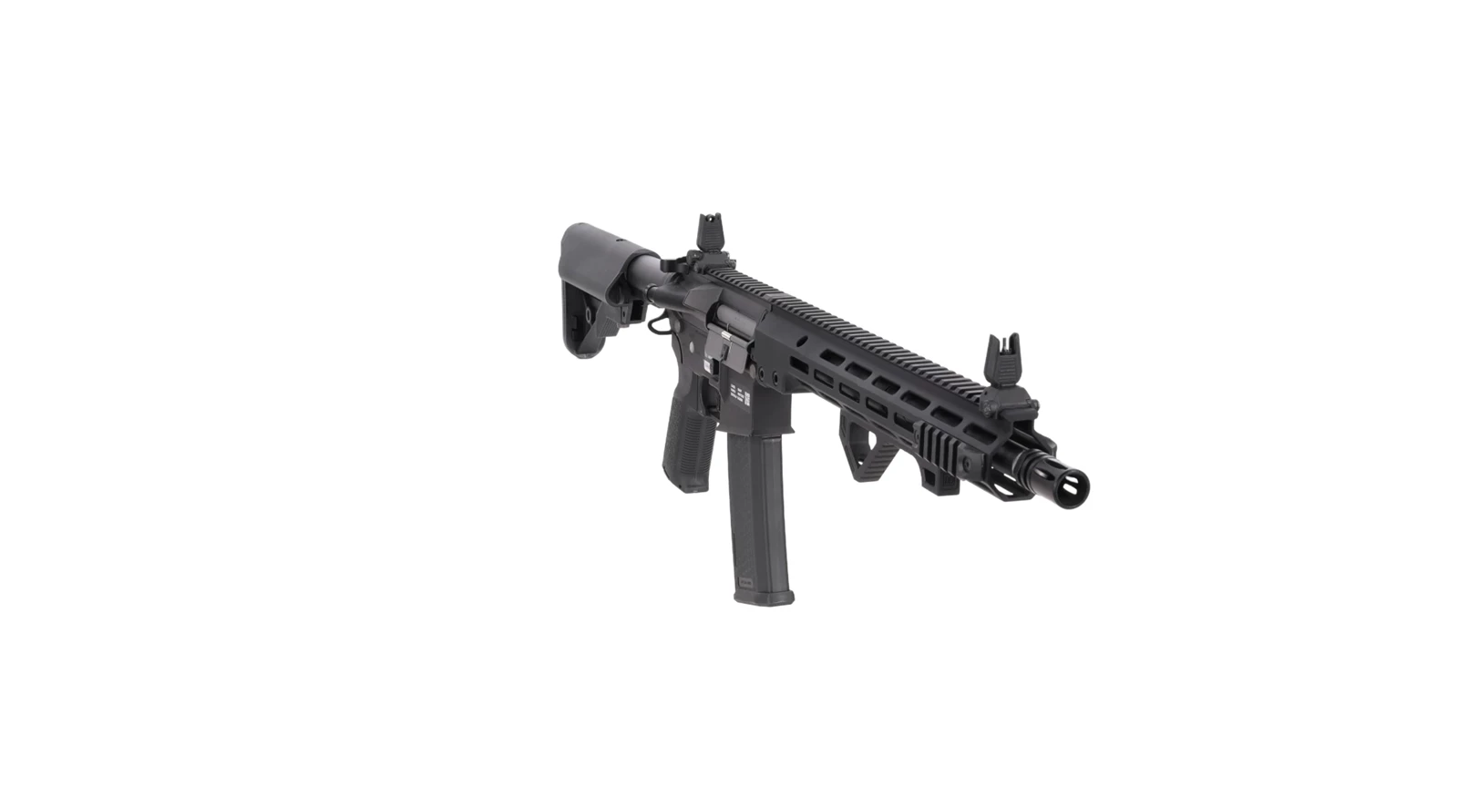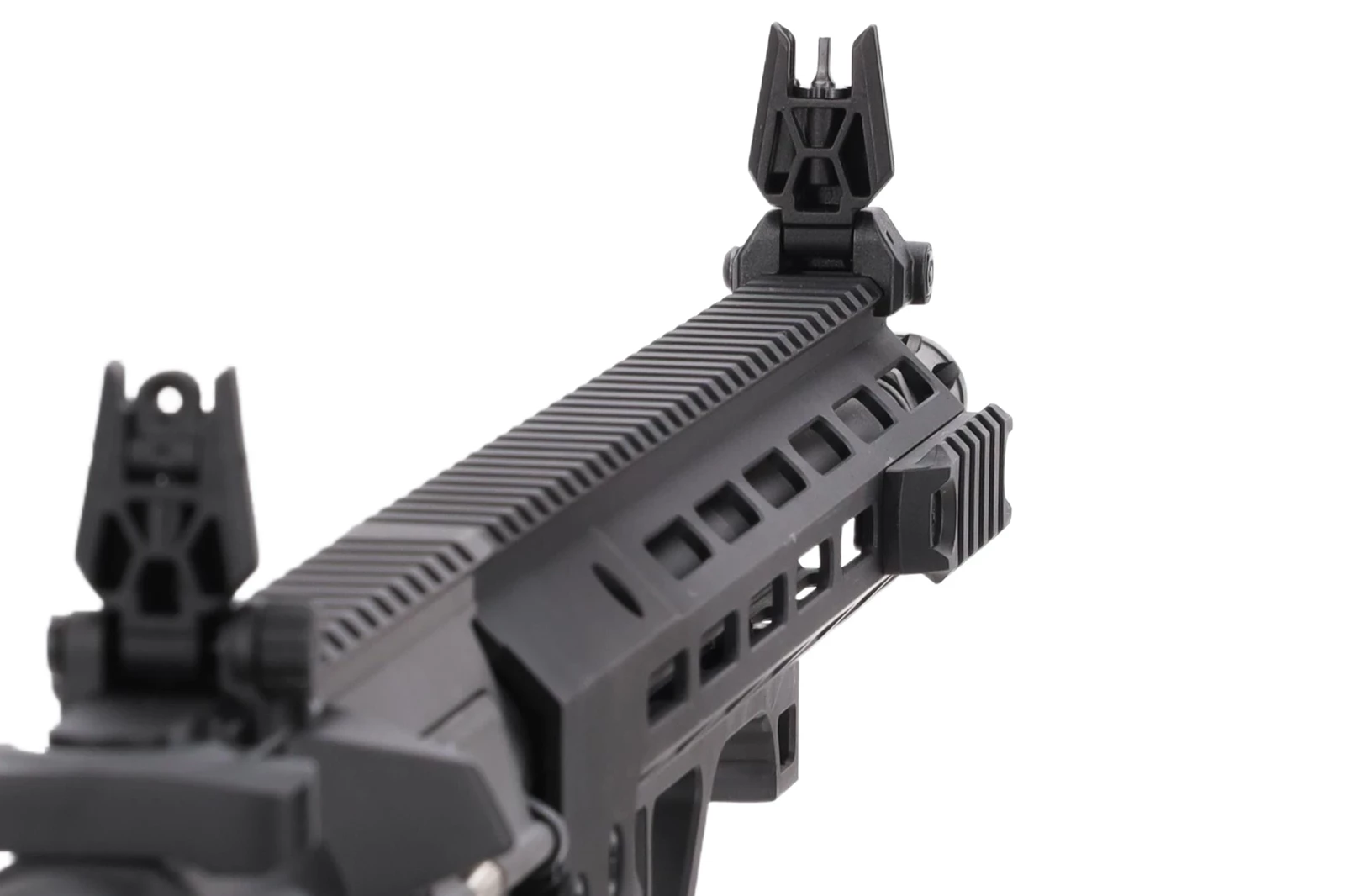 Replika wyposażona jest we front w systemie montażowym M-LOK na którym montować można różnej maści akcesoria taktyczne: latarki, chwyty, wskaźniki laserowe czy celowniki optyczne. Na grzbiecie repliki umieszczono także składane przyrządy celownicze oraz szynę RIS.