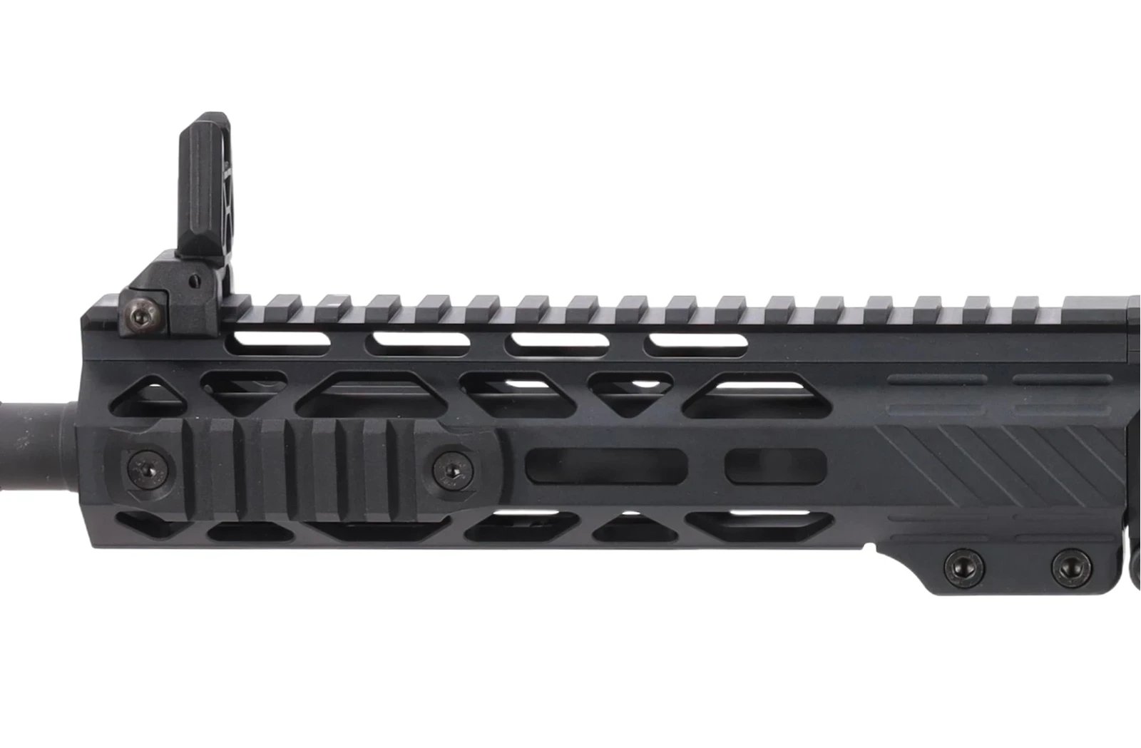 Replika wyposażona została w frontową szynę RRA Lightweight Free Float Rail w standardzie M-LOK (również licencjonowaną przez Rock River Arms®)