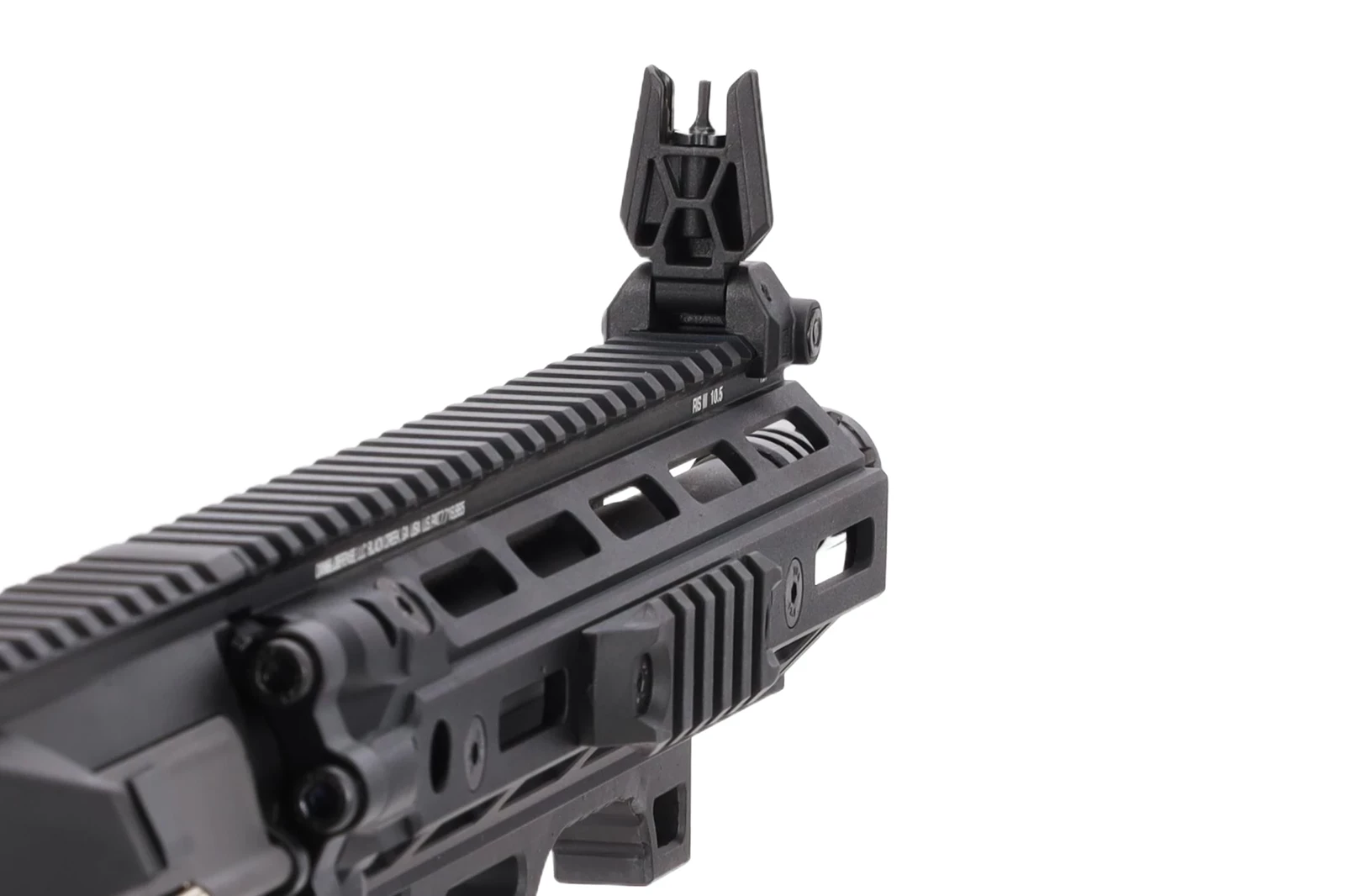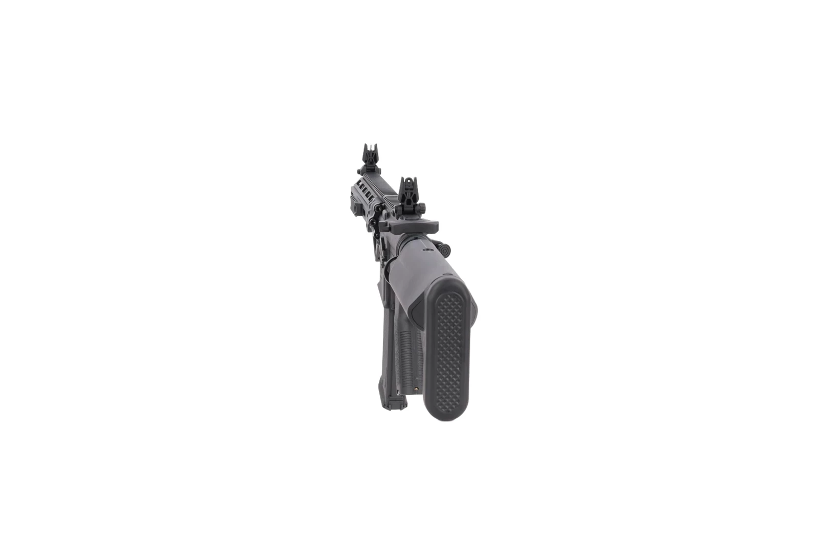 Chwyt pistoletowy QD, zapewniający łatwy i szybki dostęp do silnika bez konieczności użycia narzędzi, obustronne ucho do montażu zawieszenia taktycznego, front RIS III (również z oznaczeniami Daniel Defense®), który jest kompatybilny zarówno z systemem RIS jak i M-LOK - na chwycie znajduje się poprzednio zamontowany chwyt kątowy, a pozostała przestrzeń umożliwi montaż sporej ilości dodatkowych akcesoriów; lasery, latarki, kolimatory itp. Replika posiada mieszczącą akumulator powiększoną kolbę typu SF, składane przyrządy celownicze, powiększoną rączkę przeładowania, dodatkowe szyny RIS po obu stronach łoża. Replika w większości wykonana została z metalu, jedyne polimerowe elementy to kolba, chwyt pistoletowy, przyrządy celownicze, co przełoży się na jej dużą wytrzymałość i odporność na niesprzyjające warunki w terenie.