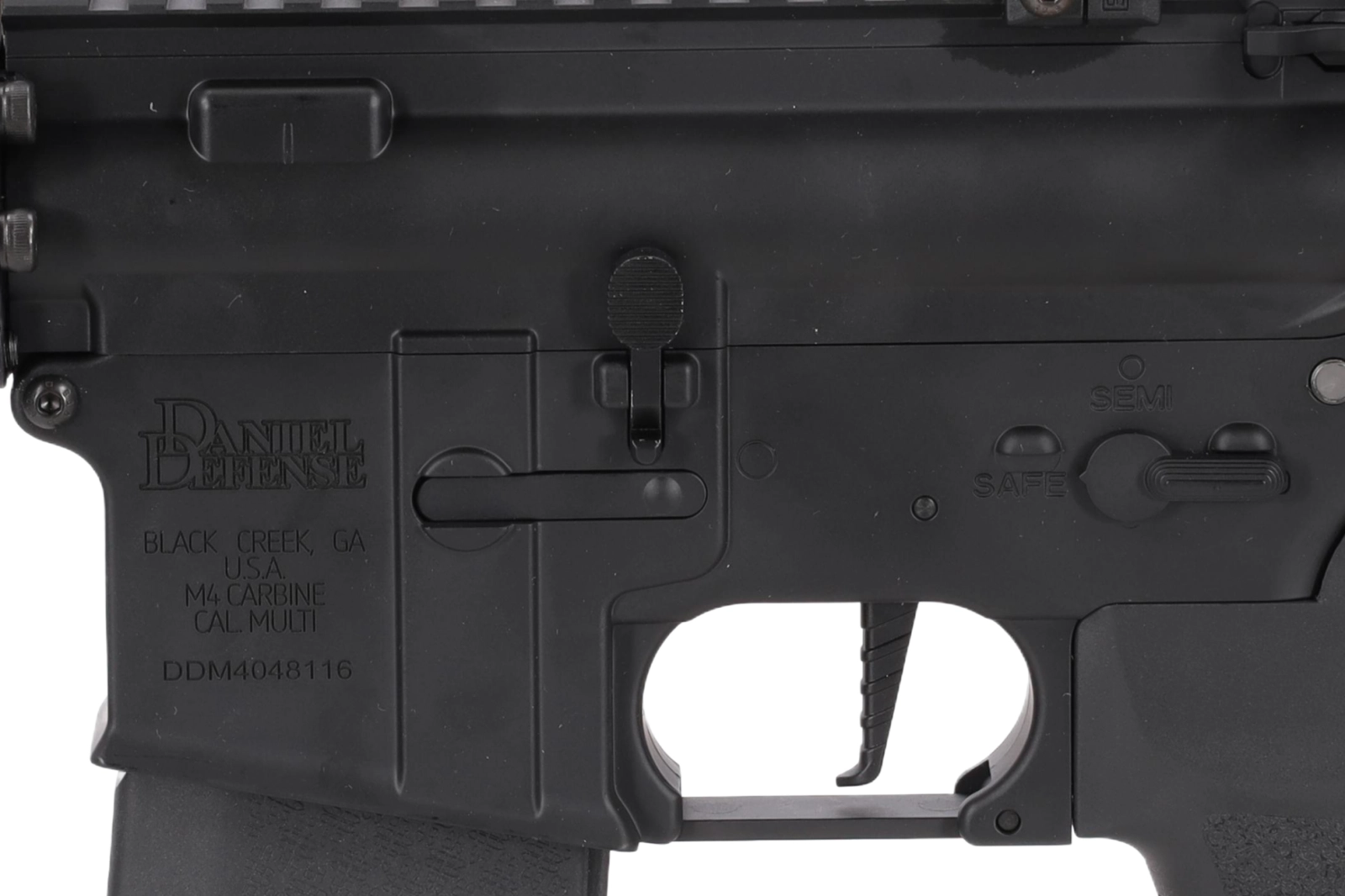 Na korpusie umieszczono indywidualny numer seryjny oraz grawer marki Daniel Defense®. Wartymi uwagi elementami w replice są: