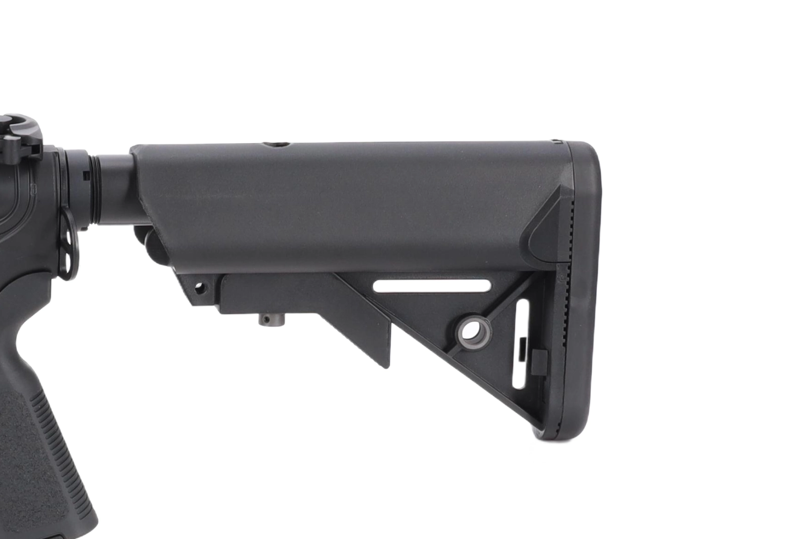 Chwyt pistoletowy QD, zapewniający łatwy i szybki dostęp do silnika bez konieczności użycia narzędzi, obustronne ucho do montażu zawieszenia taktycznego, front RIS III (również z oznaczeniami Daniel Defense®), który jest kompatybilny zarówno z systemem RIS jak i M-LOK - na chwycie znajduje się poprzednio zamontowany chwyt kątowy, a pozostała przestrzeń umożliwi montaż sporej ilości dodatkowych akcesoriów; lasery, latarki, kolimatory itp. Replika posiada mieszczącą akumulator powiększoną kolbę typu SF, składane przyrządy celownicze, powiększoną rączkę przeładowania, dodatkowe szyny RIS po obu stronach łoża. Replika w większości wykonana została z metalu, jedyne polimerowe elementy to kolba, chwyt pistoletowy, przyrządy celownicze, co przełoży się na jej dużą wytrzymałość i odporność na niesprzyjające warunki w terenie.