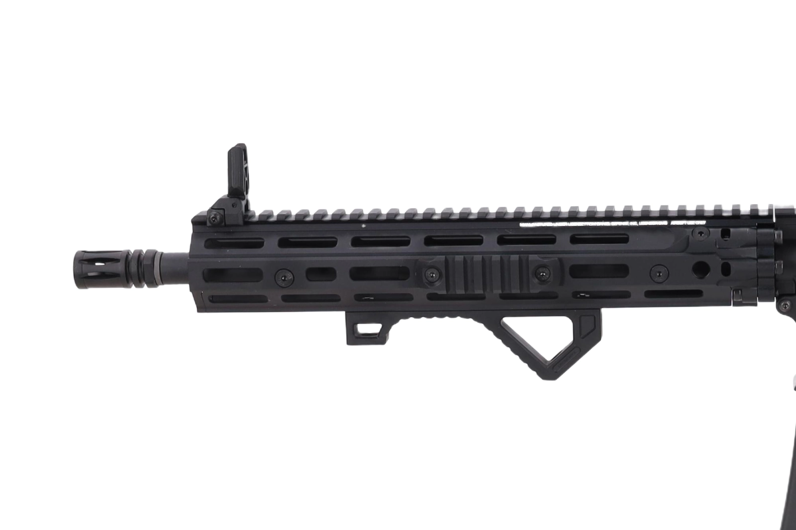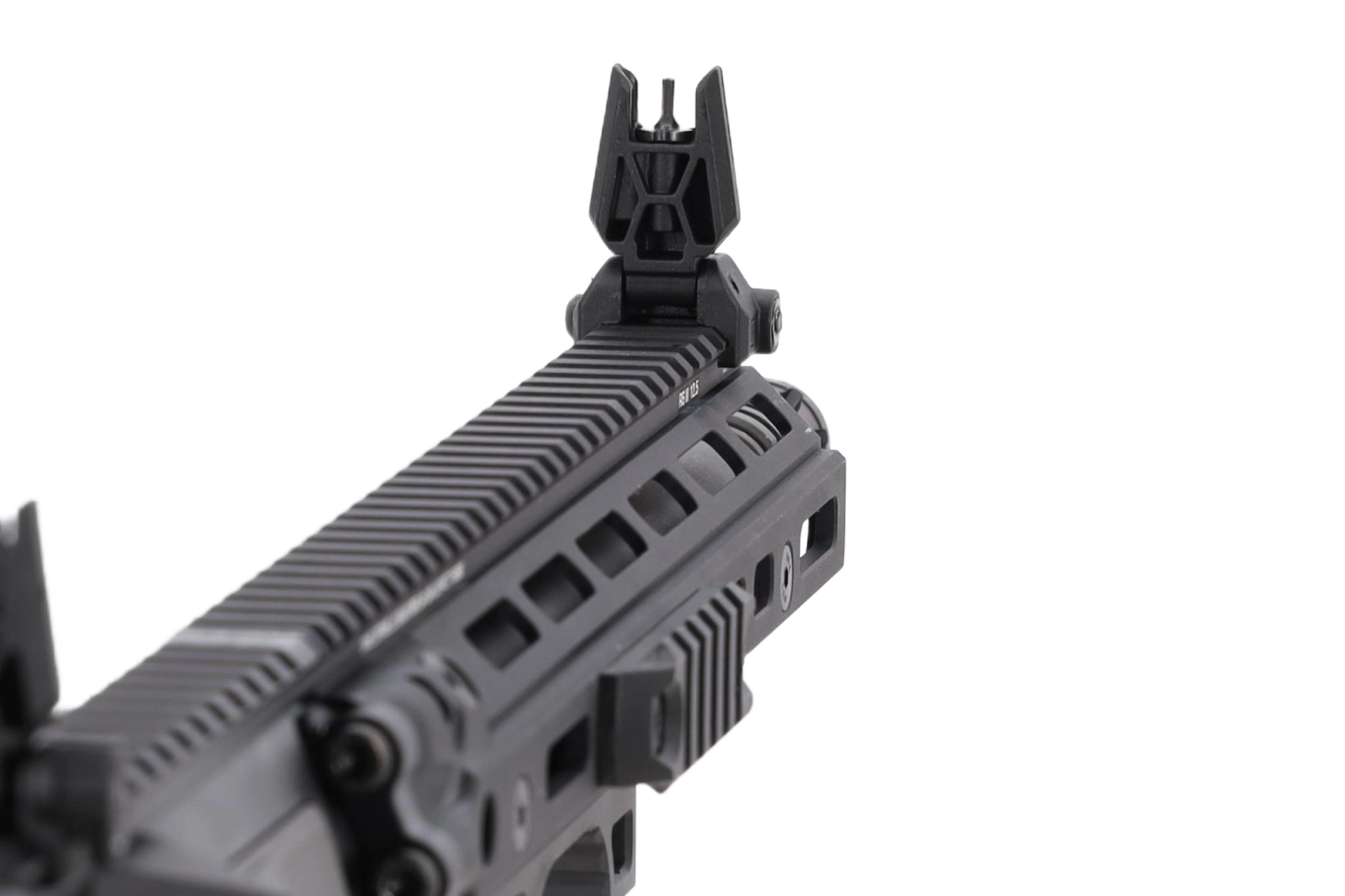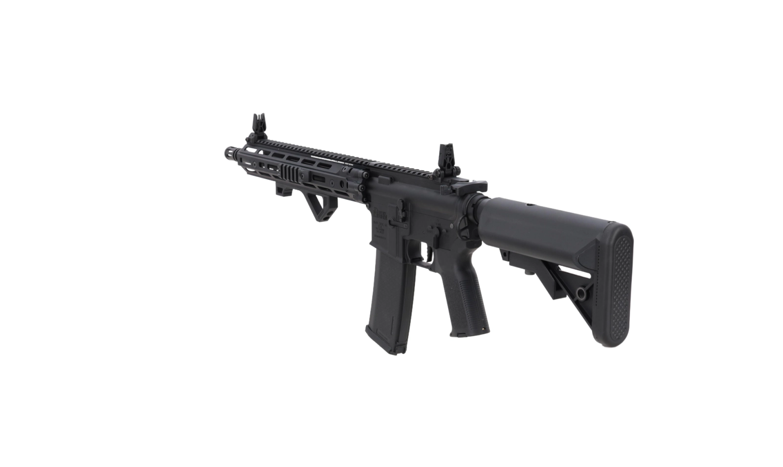 Chwyt pistoletowy QD, zapewniający łatwy i szybki dostęp do silnika bez konieczności użycia narzędzi, obustronne ucho do montażu zawieszenia taktycznego, front RIS III (również z oznaczeniami Daniel Defense®), który jest kompatybilny zarówno z systemem RIS jak i M-LOK - na chwycie znajduje się poprzednio zamontowany chwyt kątowy, a pozostała przestrzeń umożliwi montaż sporej ilości dodatkowych akcesoriów; lasery, latarki, kolimatory itp. Replika posiada mieszczącą akumulator powiększoną kolbę typu SF, składane przyrządy celownicze, powiększoną rączkę przeładowania, dodatkowe szyny RIS po obu stronach łoża. Replika w większości wykonana została z metalu, jedyne polimerowe elementy to kolba, chwyt pistoletowy, przyrządy celownicze, dodatkowe szyny RIS, co przełoży się na jej dużą wytrzymałość i odporność na niesprzyjające warunki w terenie.