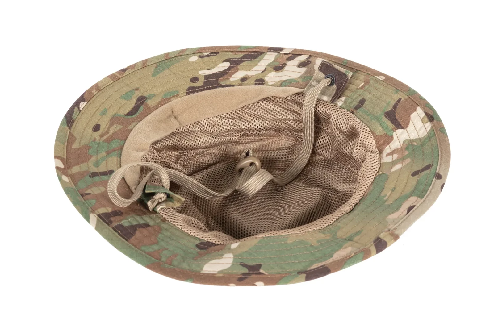 Kapelusz od Emerson Gear model EM9681 cieszy się ciekawym, ponadczasowym wyglądem. EM9681 posiada 5cm rondo kapelusza, które ani przez chwile nie będzie zasłaniać widoku, co jest niezwykle istotne przy komunikacji podczas zajęć taktycznych. Kapelusz można wyregulować pod kątem średnicy, jednocześnie jest dobrze wentylowany - ta cecha jest szczególnie ważna podczas użytkowania latem.