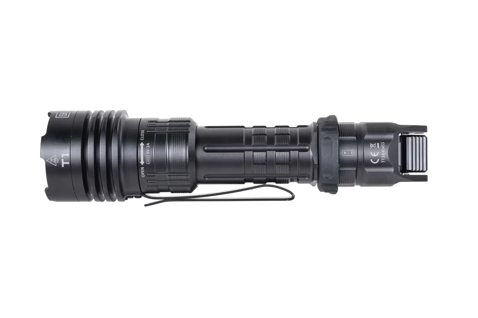 - W zestawie dołączono zapasowe oringi (2 szt.), taktyczną smycz na rękę, kabel USB-C, akumulator 18650.