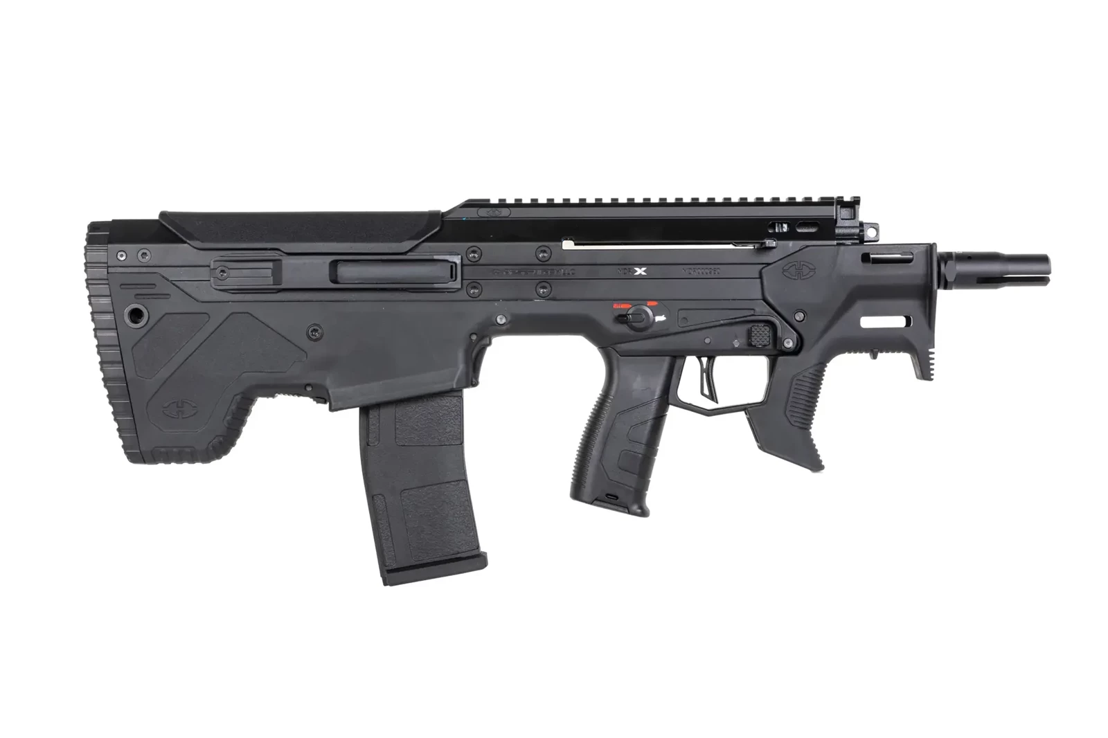 - Tryb ognia seria/binarny, opóźnienie DMR, ustawienia ROFu, pre-cocking, tryb uśpienia, aktywny hamulec oraz ochrona baterii przed przegraniem.