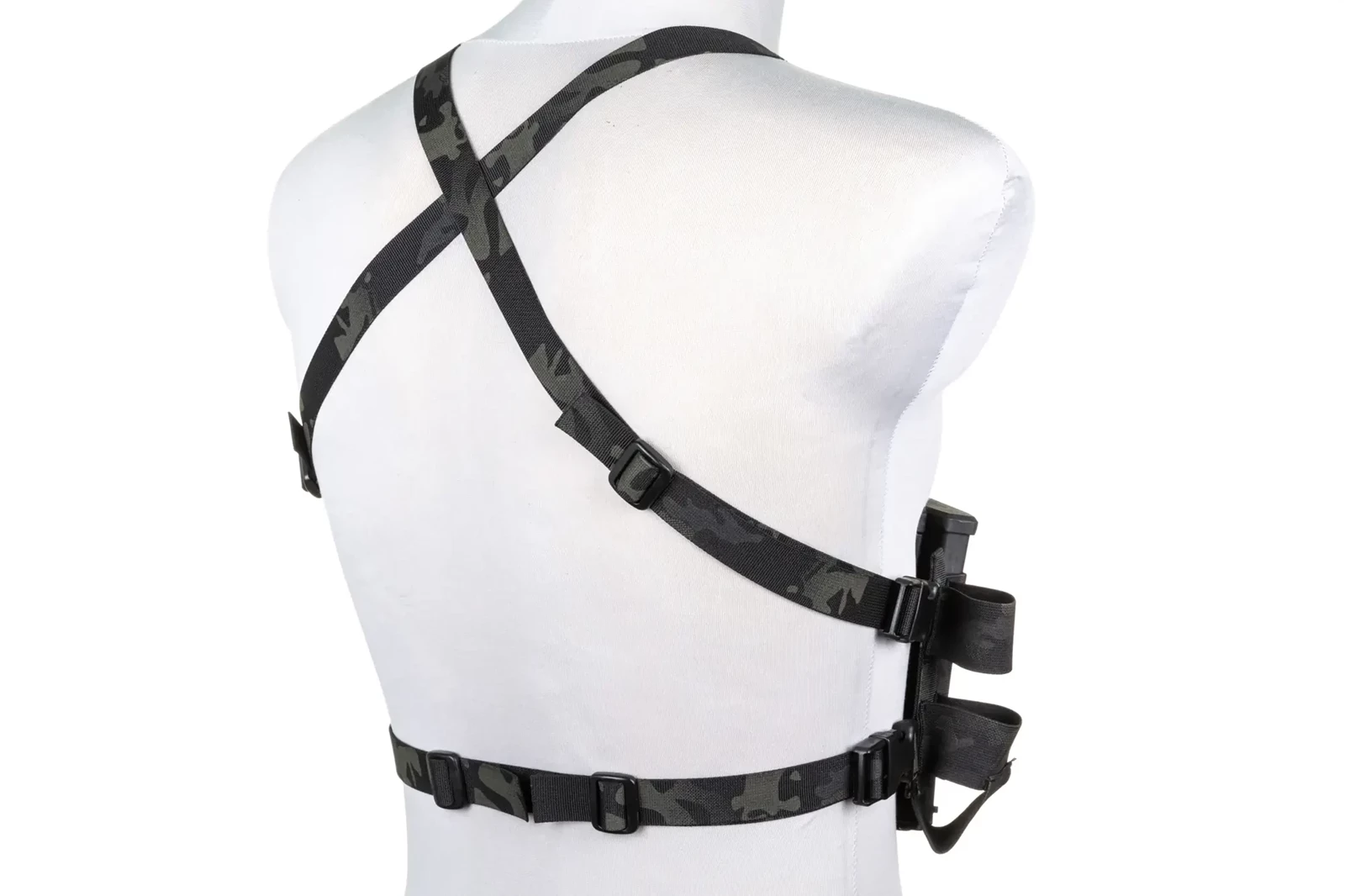 Całość jest regulowana przy pomocy X-kształtnych szelek.
