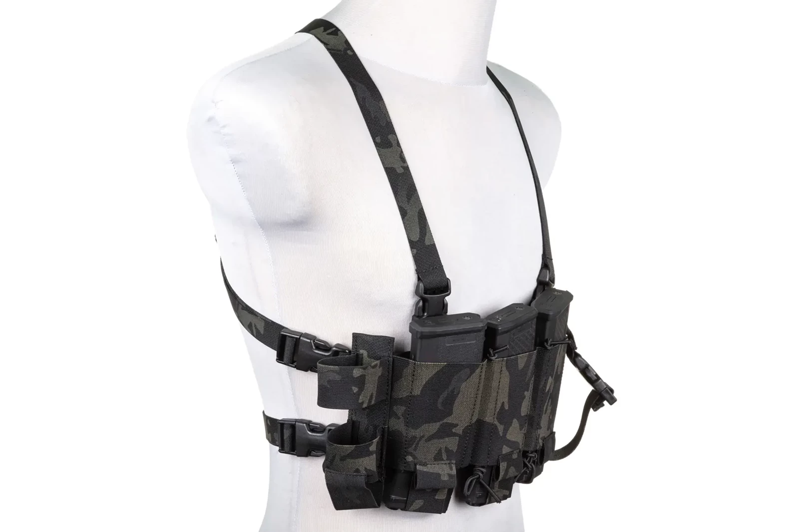 Kamizelka posiada trzy ładownice na magazynki karabinowe - zarówno typu AK jak i AR. Na przodzie ładownic magazynkowych znajdują się dodatkowe - pomniejszone ładownice, które pozwolą na sprawne przemieszczanie się z magazynkami do PMów (np. typu MP5 czy do Specna Arms X-Series), ale również pomieszczą magazynki pistoletowe, dodatkowe akcesoria jak glowsticki, multitool lub markery. Po bokach znajdują się ładownice na radio lub np. granat.