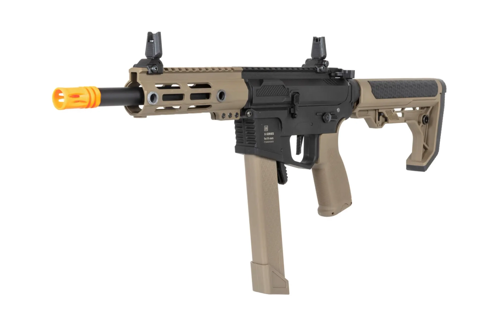 Pistolet maszynowy ASG Specna Arms SA-FX01 FLEX™ HAL ETU Half-Tan z pomarańczowym urządzeniem wylotowym