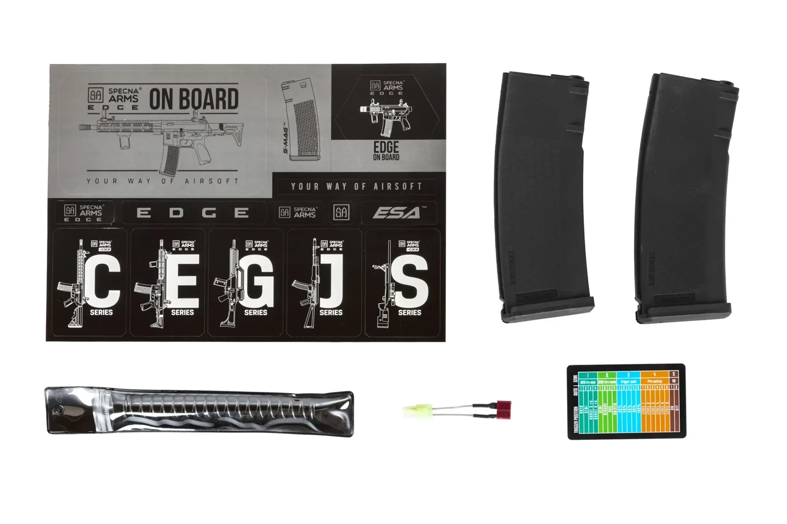 W pudełku z repliką znajdują się dwa magazynki mid-cap S-MAG o pojemności 125 kulek każdy. S-MAG to ekskluzywny magazynek polimerowy zaprojektowany przez Specna Arms. Na uwagę zwraca charakterystyczna faktura złożona z logotypów Specna Arms. S-mag zapewnia bezproblemowe podawanie kulek, nawet przy wysokim ROF.