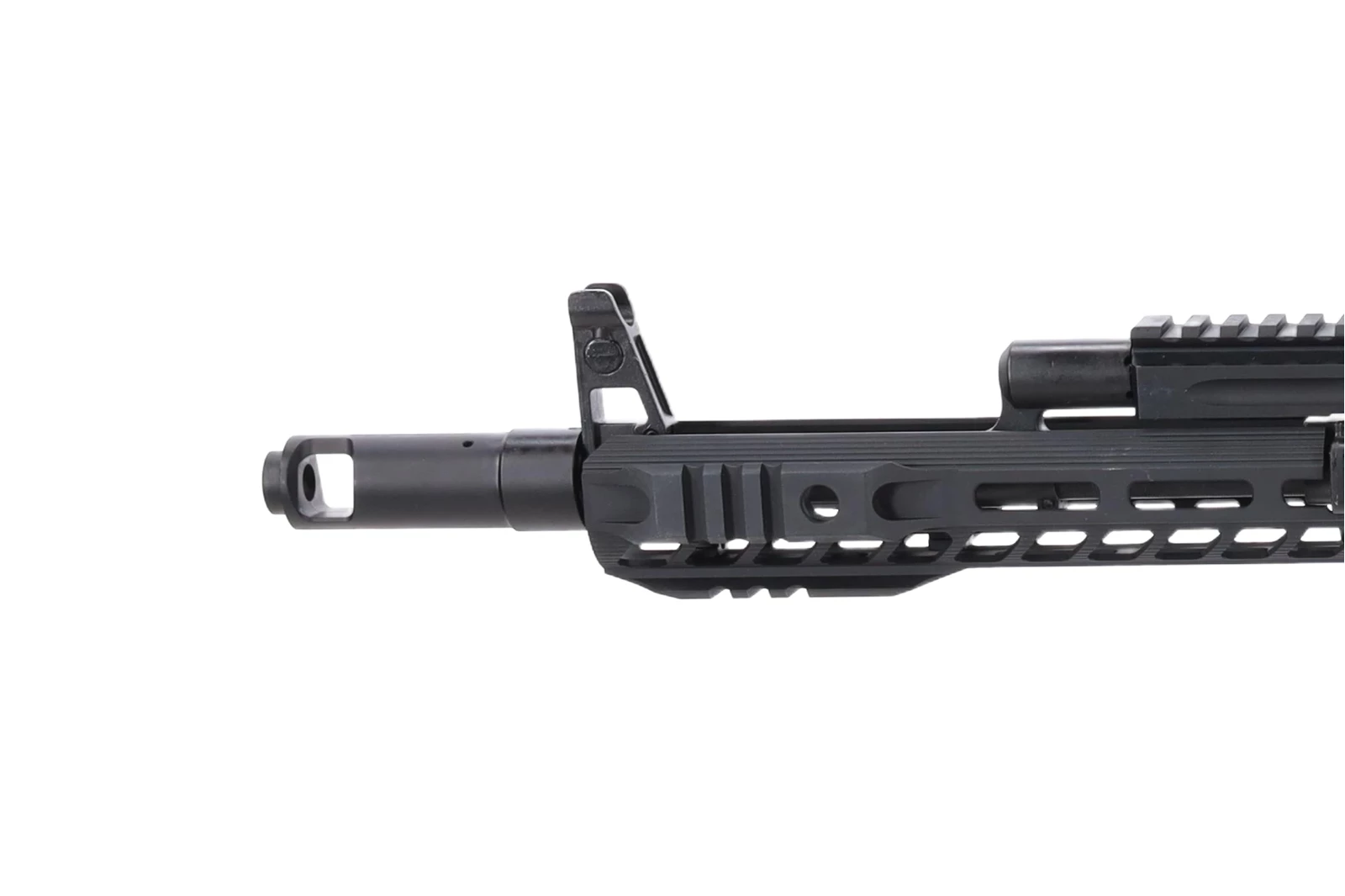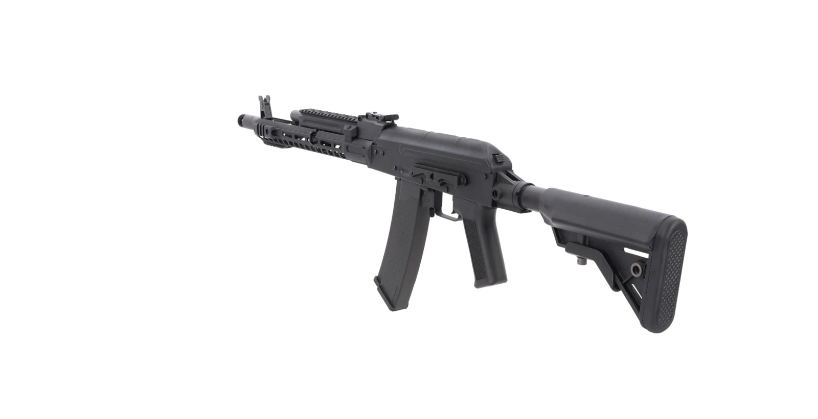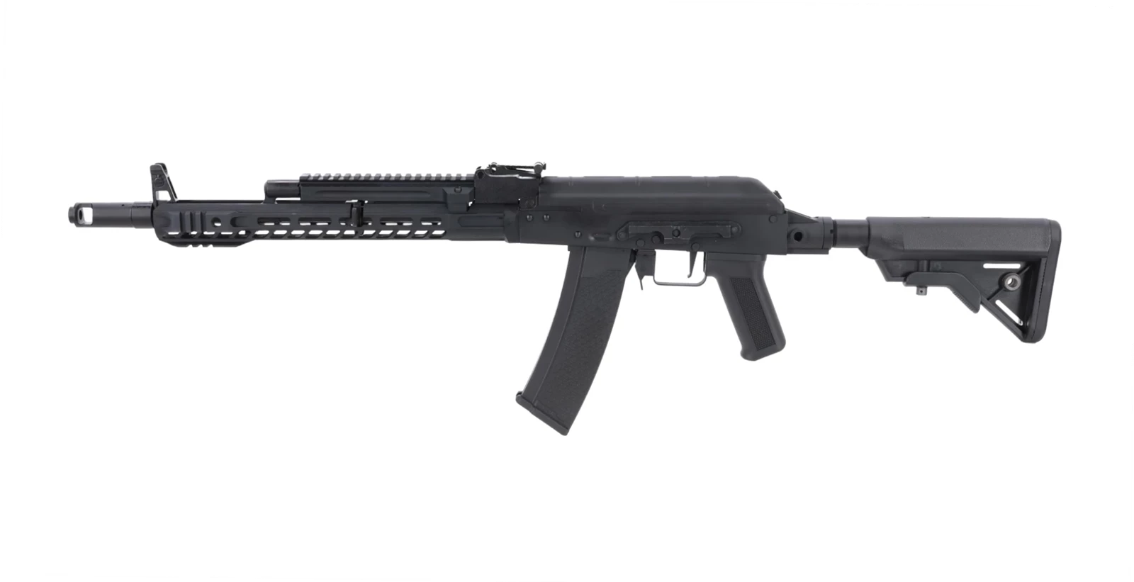 Repliki karabinków Specna Arms J-Series™ wykonane zostały w dużej części ze stali. Stalowe elementy to korpus, pokrywa komory zamkowej, lufa zewnętrzna, osłona spustu, zatrzask magazynka, skrzydełko selektora, mocowanie QD na kolbie, piny i nity. Pozostałe elementy metalowe wykonano ze stopu cynku i aluminium (prowadnicę kolby, łoże kompatybilne z systemem M-LOK oraz RIS, urządzenie wylotowe), a specjalne pokrycie zastosowane do ich wykończenia nadaje replice bardzo realistycznego wyglądu. Z tworzywa sztucznego wykonano chwyt pistoletowy oraz ergonomiczną kolbę, zakończoną gumową stopką