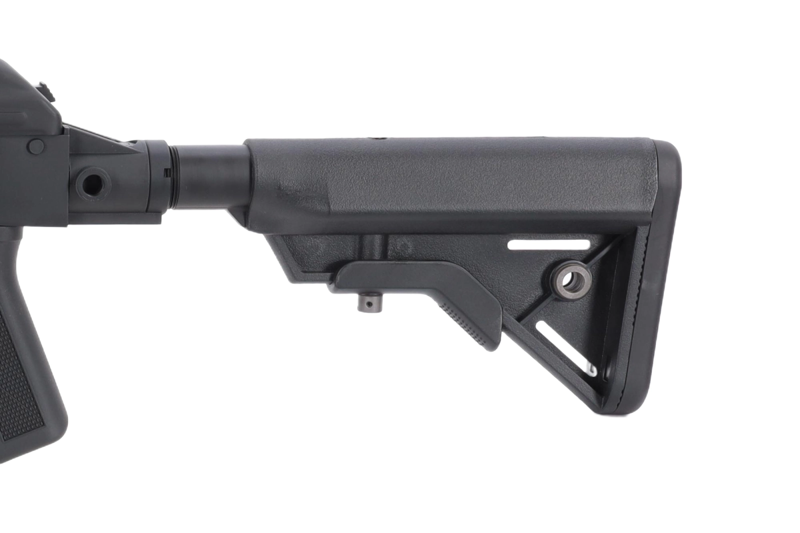 Repliki karabinków Specna Arms J-Series™ wykonane zostały w dużej części ze stali. Stalowe elementy to korpus, pokrywa komory zamkowej, lufa zewnętrzna, osłona spustu, zatrzask magazynka, skrzydełko selektora, mocowanie QD na kolbie, piny i nity. Pozostałe elementy metalowe wykonano ze stopu cynku i aluminium (prowadnicę kolby, łoże kompatybilne z systemem M-LOK oraz RIS, urządzenie wylotowe), a specjalne pokrycie zastosowane do ich wykończenia nadaje replice bardzo realistycznego wyglądu. Z tworzywa sztucznego wykonano chwyt pistoletowy oraz ergonomiczną kolbę, zakończoną gumową stopką
